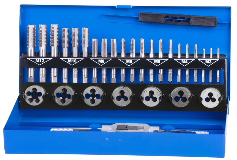 Set tarozi și filiere HSS Strend Pro SX1033, 33 piese, M3–M12