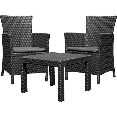 Set terasă Keter Rosario, ratan PP grafit, masă + 2 fotolii cu perne