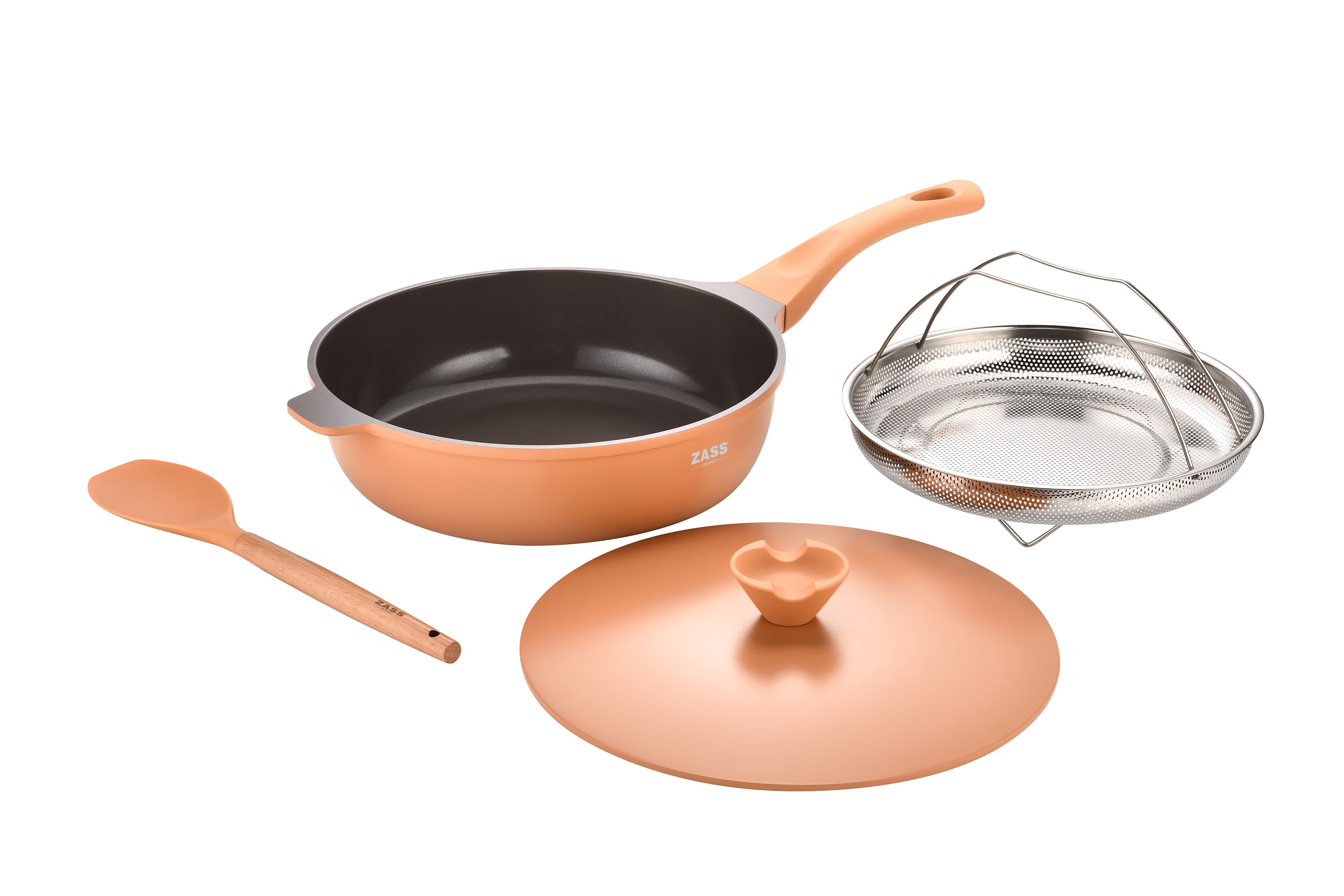 Set tigaie multifunctionala din aluminiu turnat sub presiune 4 piese ZASS Gourmet ZG-ACS 07, Roz ProDesign DailyAppliances