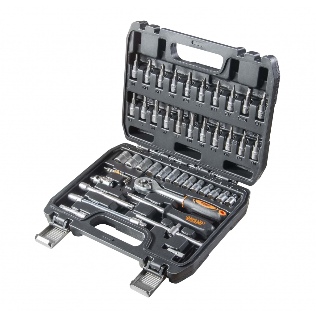 Set tubulare 1/4 Gadget, 46 piese, otel CrV, cu clichet si valiza