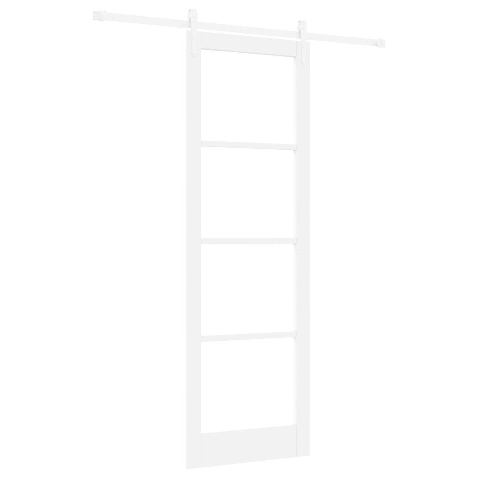 Set Ușă Glisantă cu Accesorii Alb 78x232 cm Lemn Masiv Pin, Ușă Interioară cu Sticlă 'ORKDAL'Alb 78x232x4 cm GartenMobel Dekor