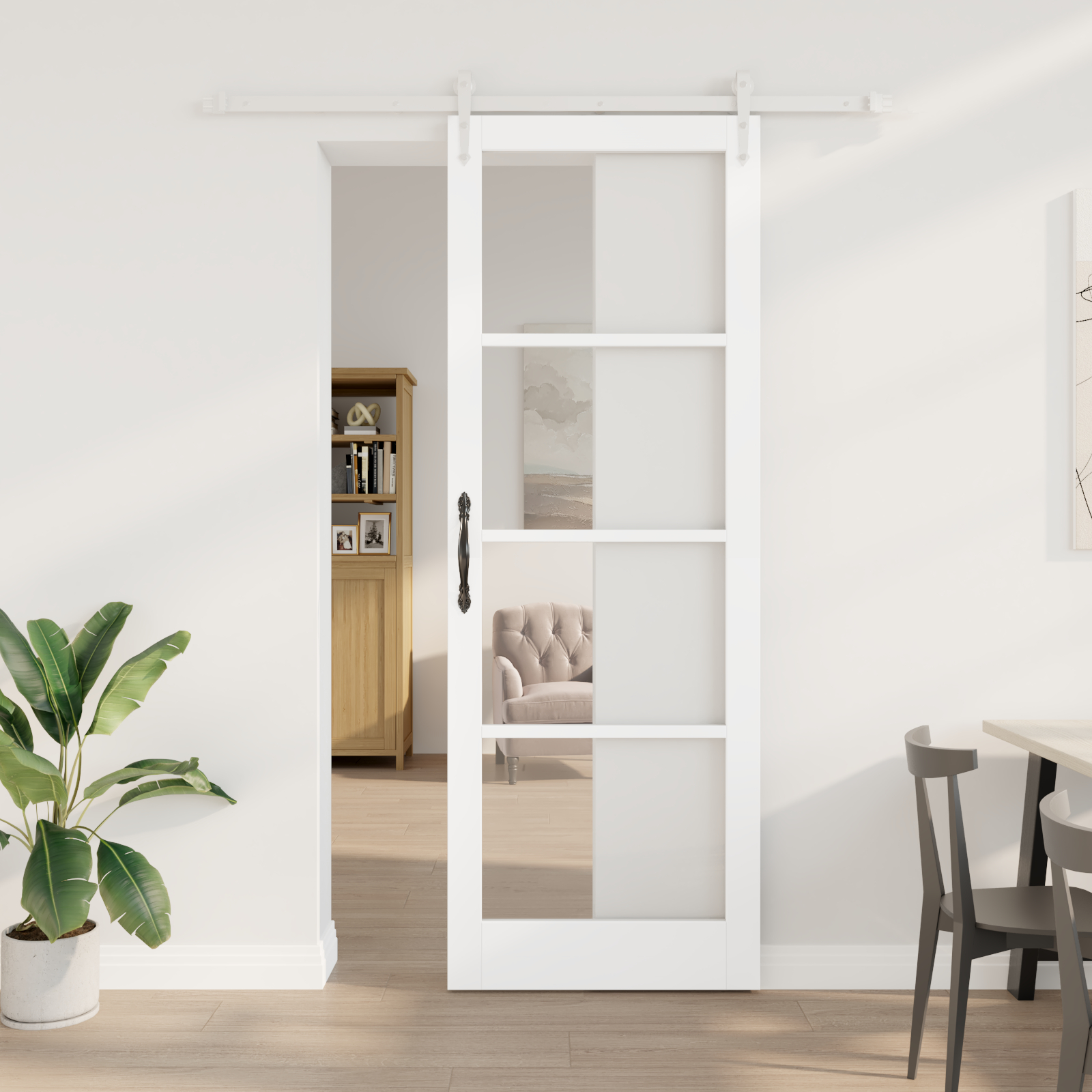 Ușa glisantă asta îți oferă o soluție stylish și practică pentru spațiile moderne. Făcută din lemn masiv cu un finisaj alb elegant, se potrivește cu multe stiluri de decor și ajută la economisirea spațiului.