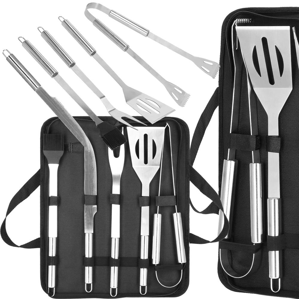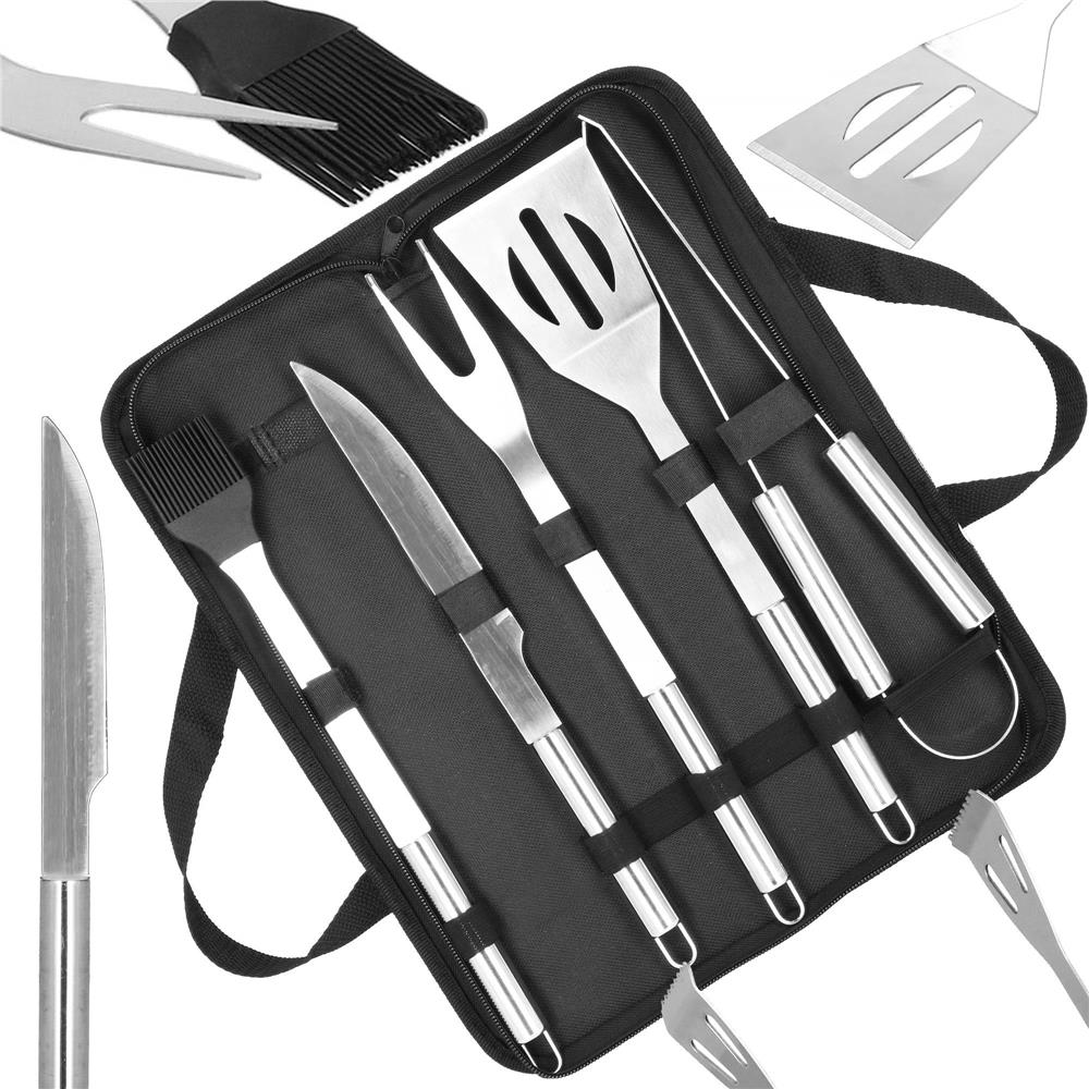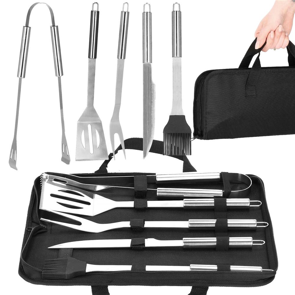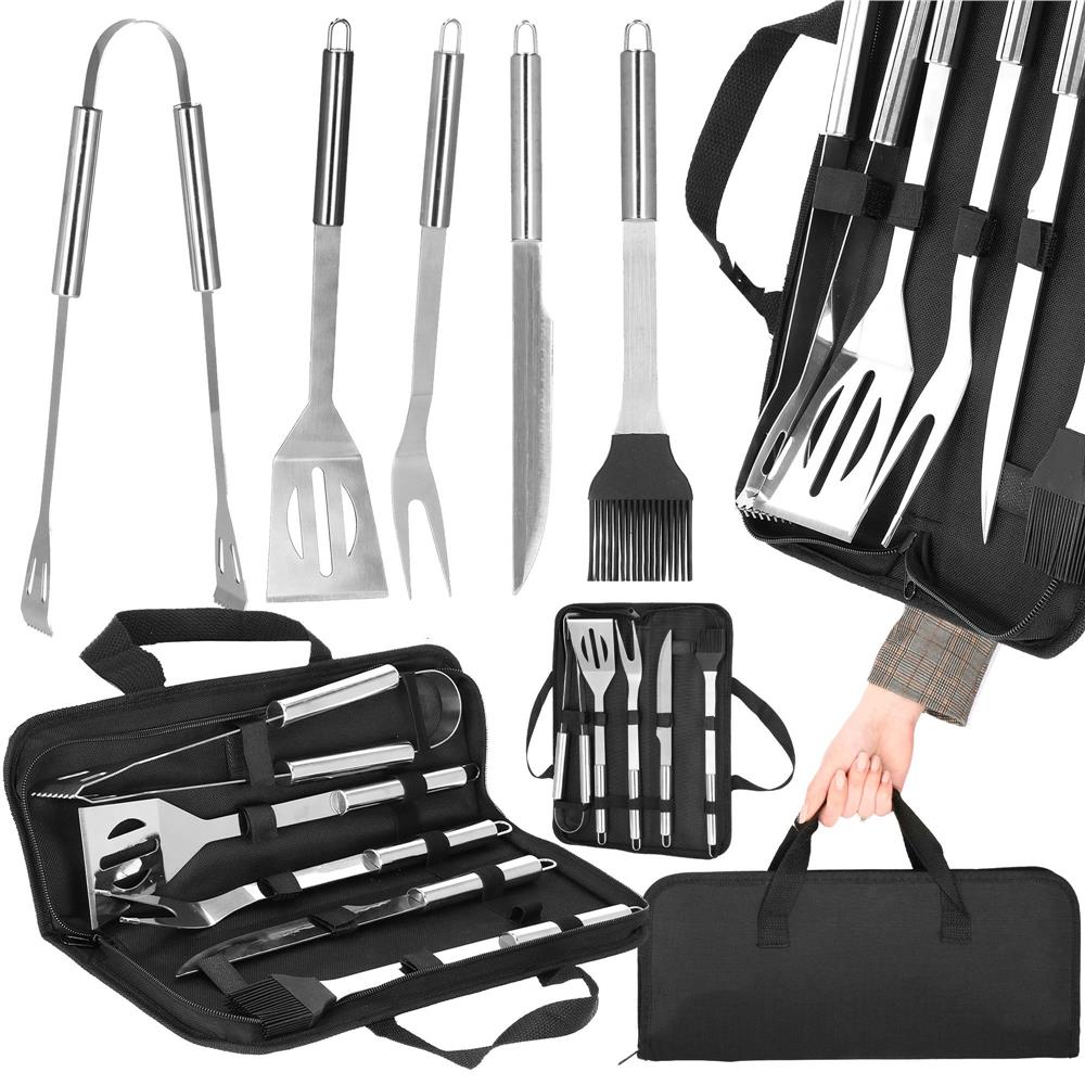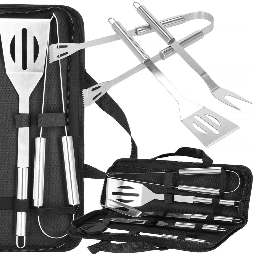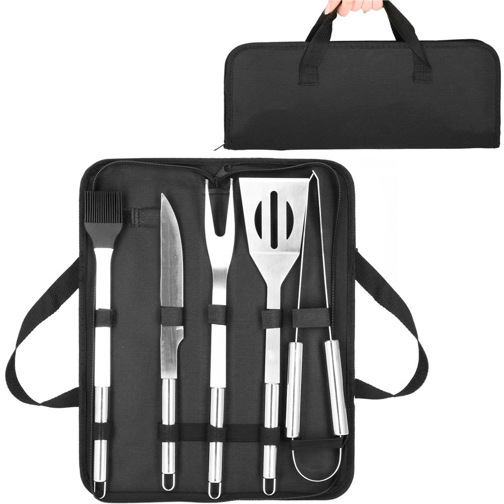 Set ustensile pentru gratar din inox, 5 piese, cu husa transport