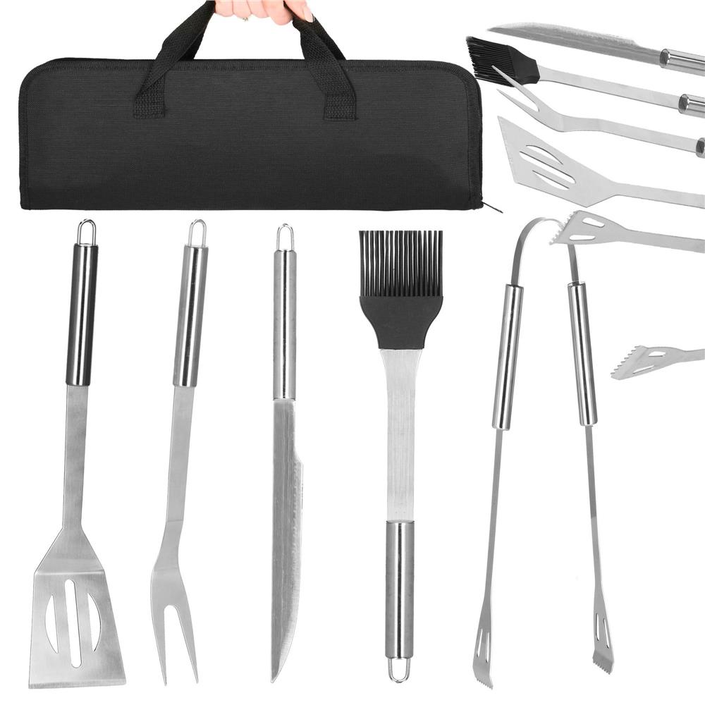 Utilizare: foloseste spatula si furculita pentru intoarcerea preparatelor, clestele pentru manevrarea sigura a carnii sau legumelor, cutitul pentru portionare, iar pensula pentru aplicarea marinadelor sau sosurilor. Dupa folosire, curata ustensilele si depoziteaza-le in husa pentru a le avea mereu la indemana.