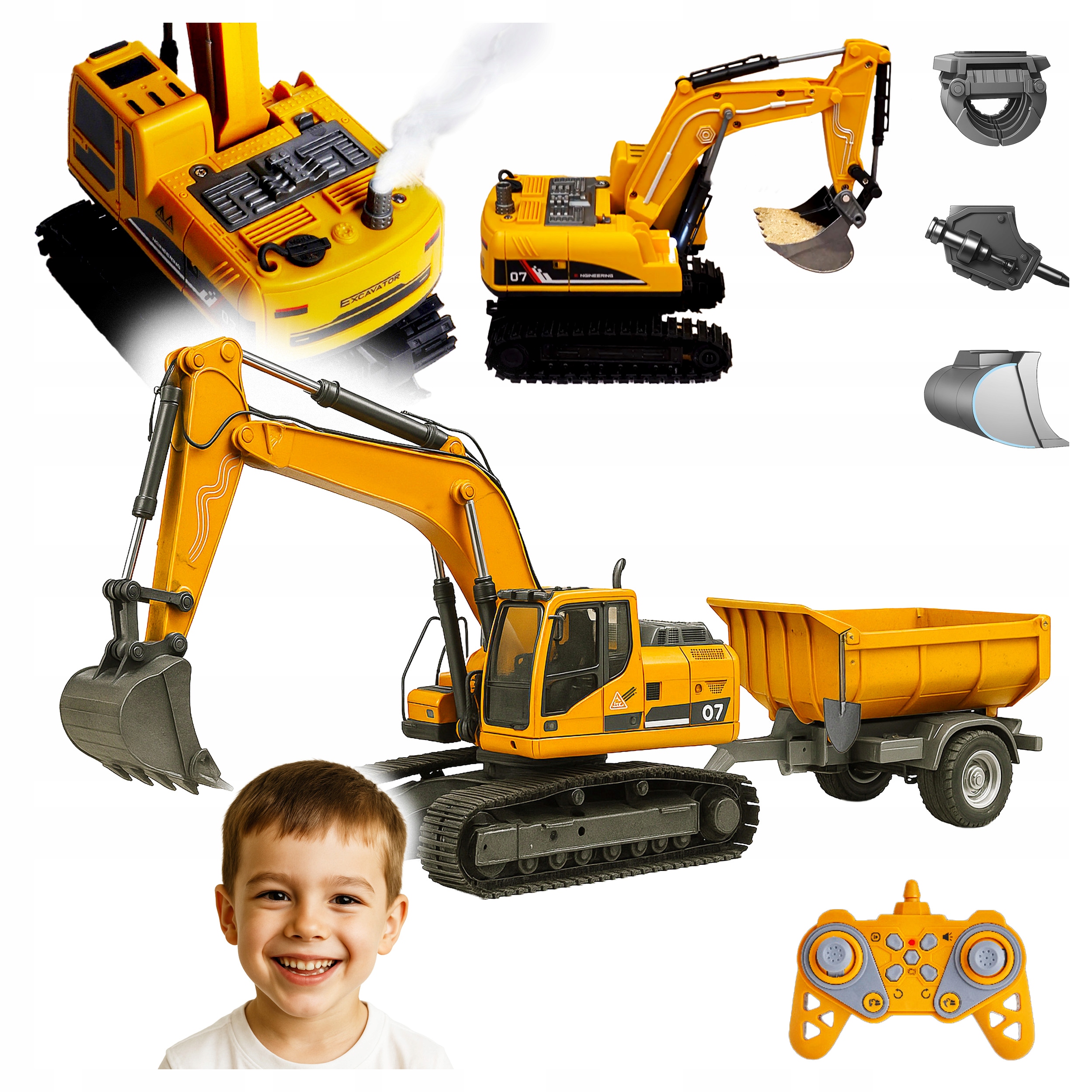 Transformă joaca într-un adevărat șantier cu acest set utilaje construcții RC, ideal pentru copiii pasionați de vehicule de lucru. Pachetul include un excavator telecomandat și o basculantă, completate de efecte realiste cu lumini, sunete și abur, pentru o experiență de joc captivantă și interactivă.