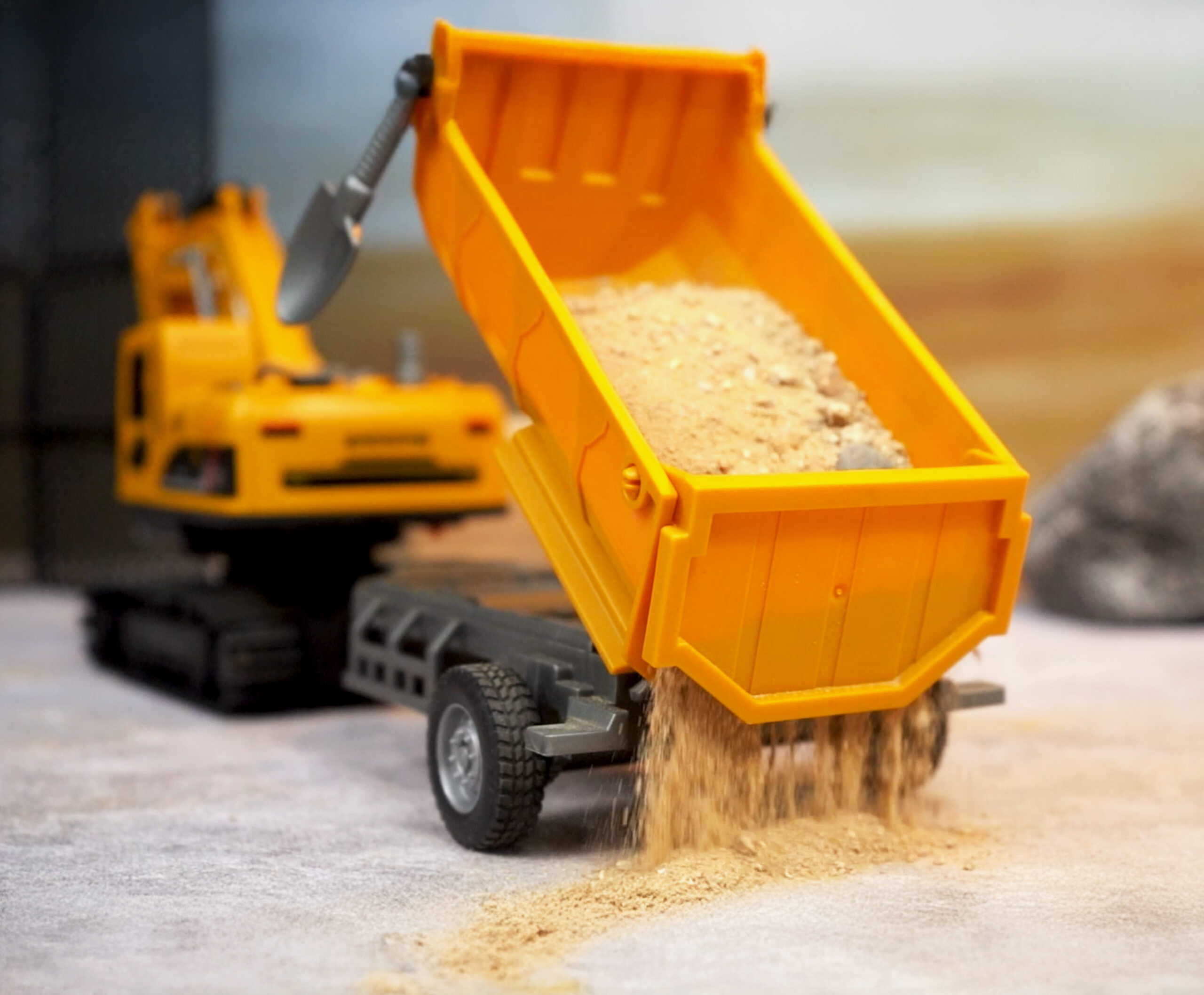 Descriere Set utilaje construcții RC excavator, basculantă,