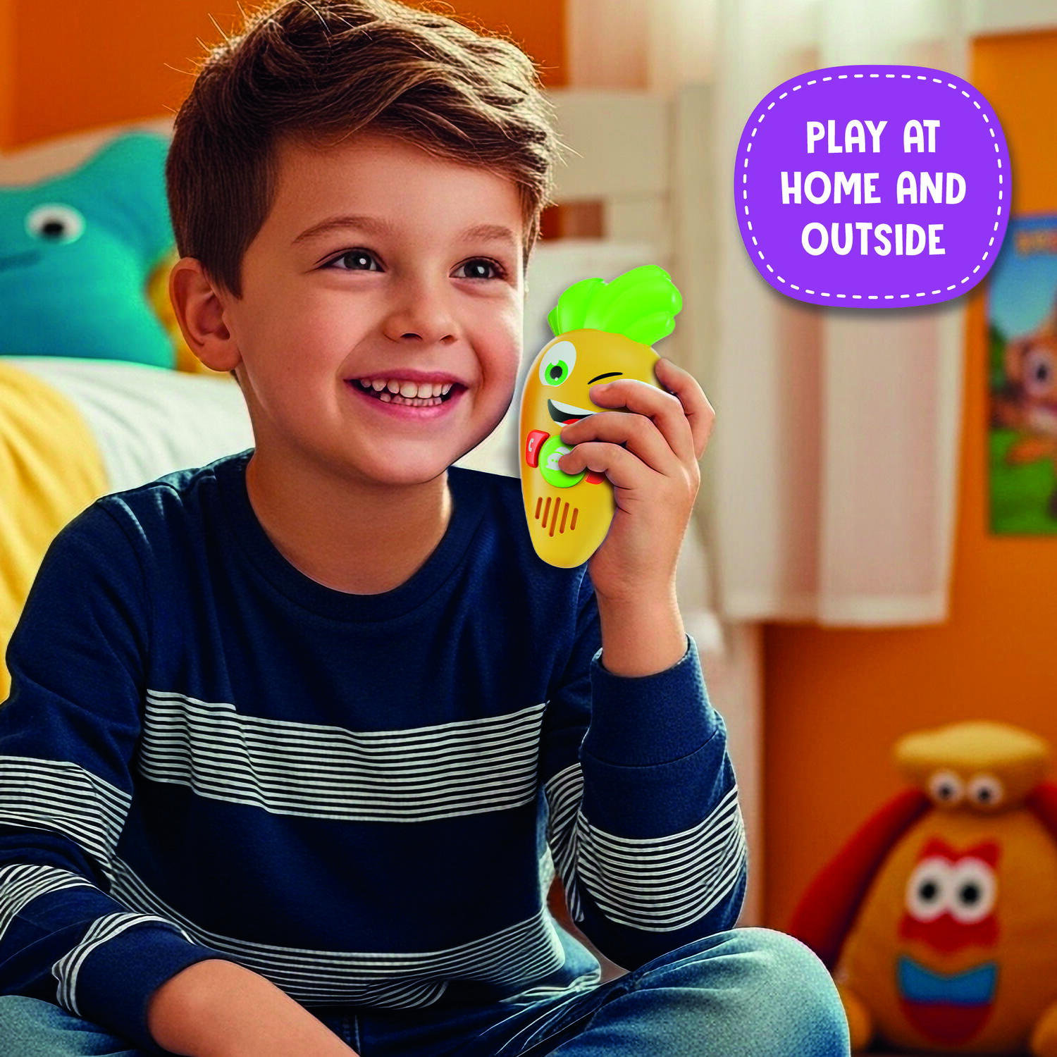 Transformă fiecare zi într-o aventură cu acest set walkie-talkie pentru copii Carotina, creat special pentru cei mici care adoră jocurile interactive. Ușor de folosit și potrivit pentru mânuțe mici, setul îi ajută pe copii să comunice, să își dezvolte imaginația și să se bucure de momente distractive atât în casă, cât și afară. Funcția de lanternă integrată face jocul și mai captivant, mai ales în expedițiile de seară sau în joaca de rol.