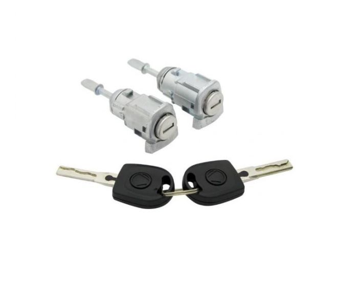 Set yale incuietoare usa VW GOLF 4; LUPO, 1998-2005; POLO, 2001-2009; TRANSPORTER/MULTIVAN (T5), 2003-2015; BEETLE, 1998-2010; BORA 1998-2005; FOX, 2005-; Skoda FABIA 6Y, 2000-2007; OCTAVIA (1U), 1997-2010, Seat AROSA, 1997-2004, fata, stanga+dreapta, cu tija de 35 mm - Componente inchidere : cu 2 butuc cheie, chei fara locas cip