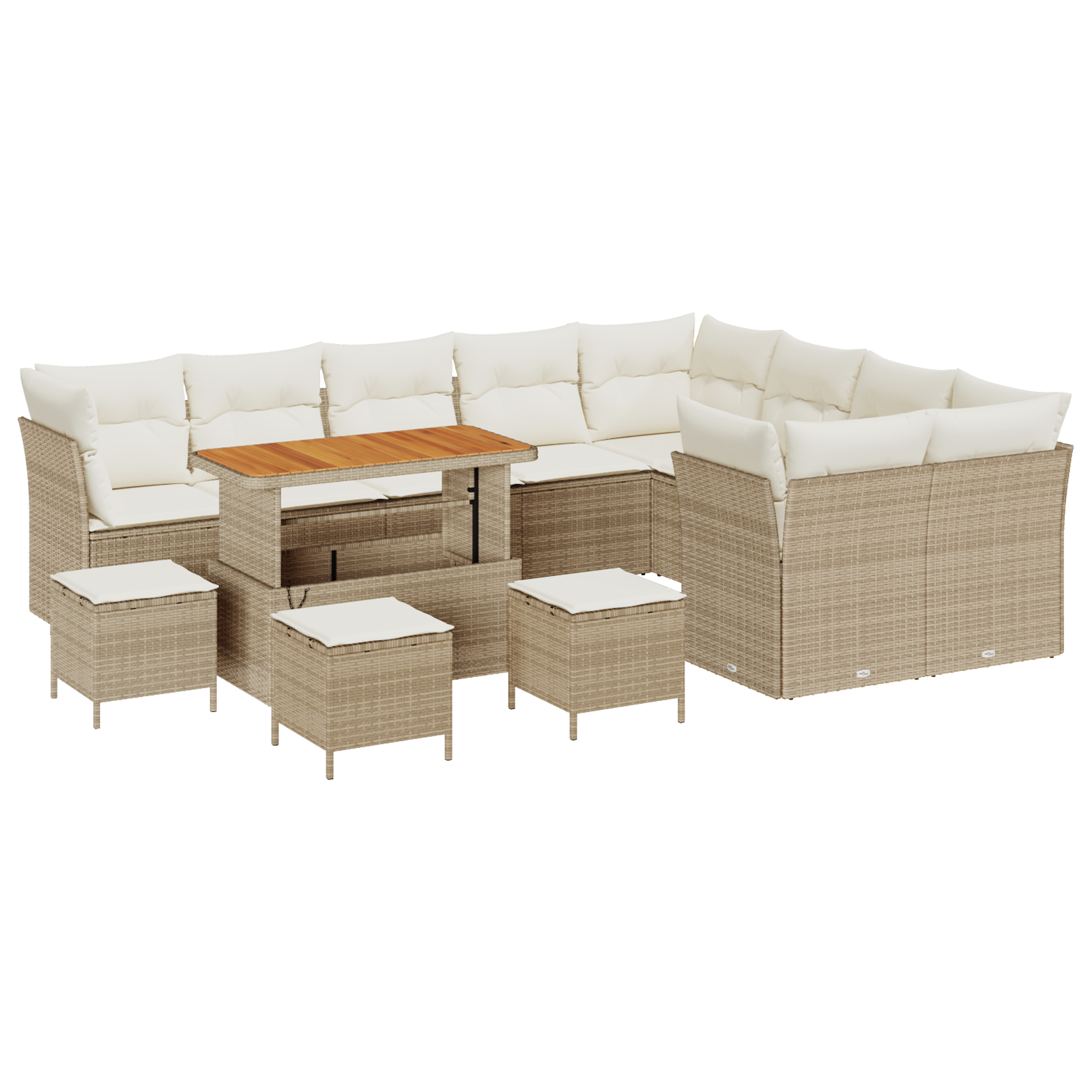 Setul de canapele grădină cu 13 piese și perne Bej din Ratan Poliester Acacia, Setul dining grădină cu 4 piese și perne Bej din Ratan Poliester Acacia GartenMobel Dekor