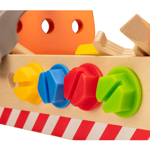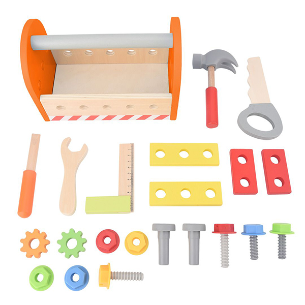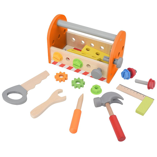 - O cutie de scule care le permite copiilor sa se joace in siguranta, imitandu-i pe parintii lor. Cu ajutorul uneltelor din lemn de inalta calitate, acoperite cu vopsele ecologice, cel mic poate incerca sa rasuceasca mobila, sa instaleze suruburi sau sa bata cuie muluri. Produsul este certificat FSC