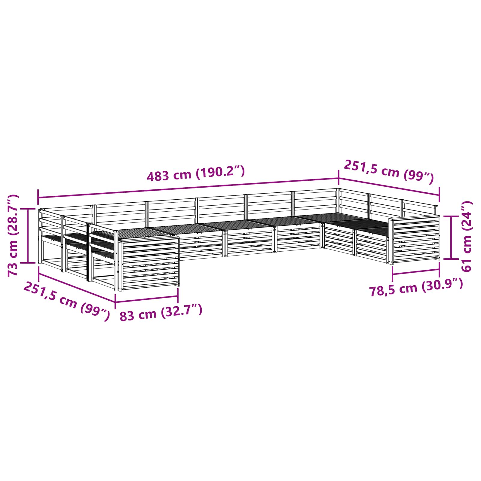 - 8 x Canapea de mijloc: 83 x 79 x 73 cm (LxWxH)