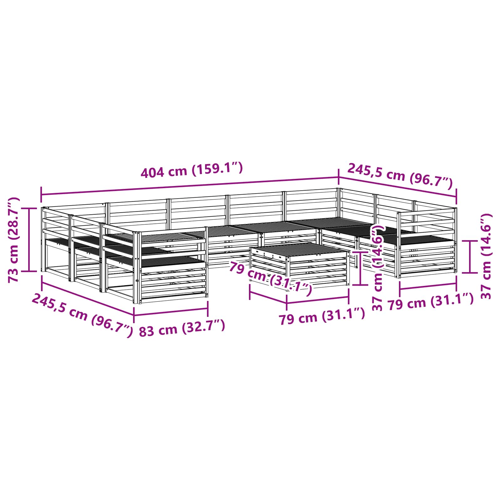 - 7 x Canapea de mijloc: 83 x 79 x 73 cm (LxWxH)