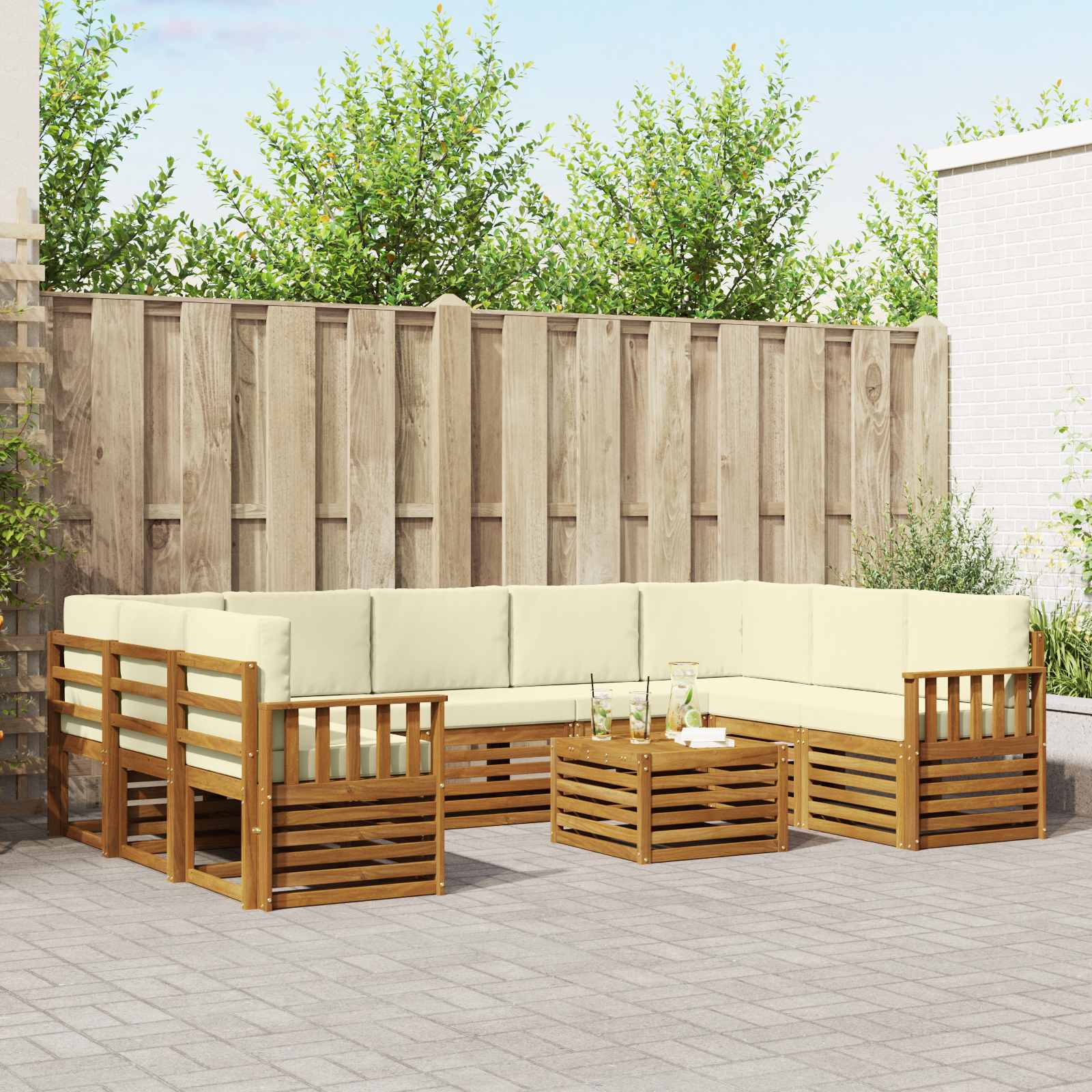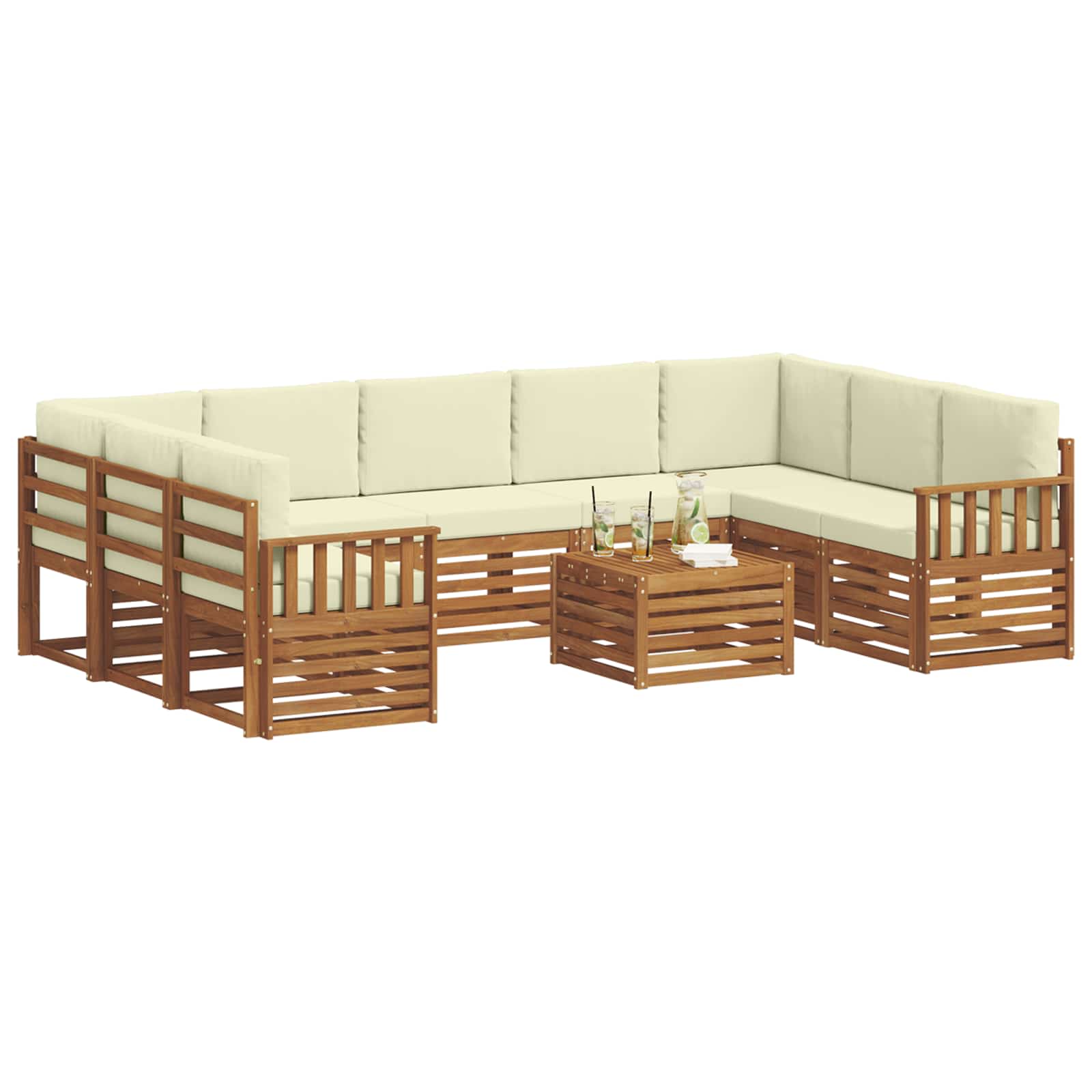 Seturi de canapele 10 pcs Natural și Crem Lemn Solid de Acacia GartenMobel Dekor