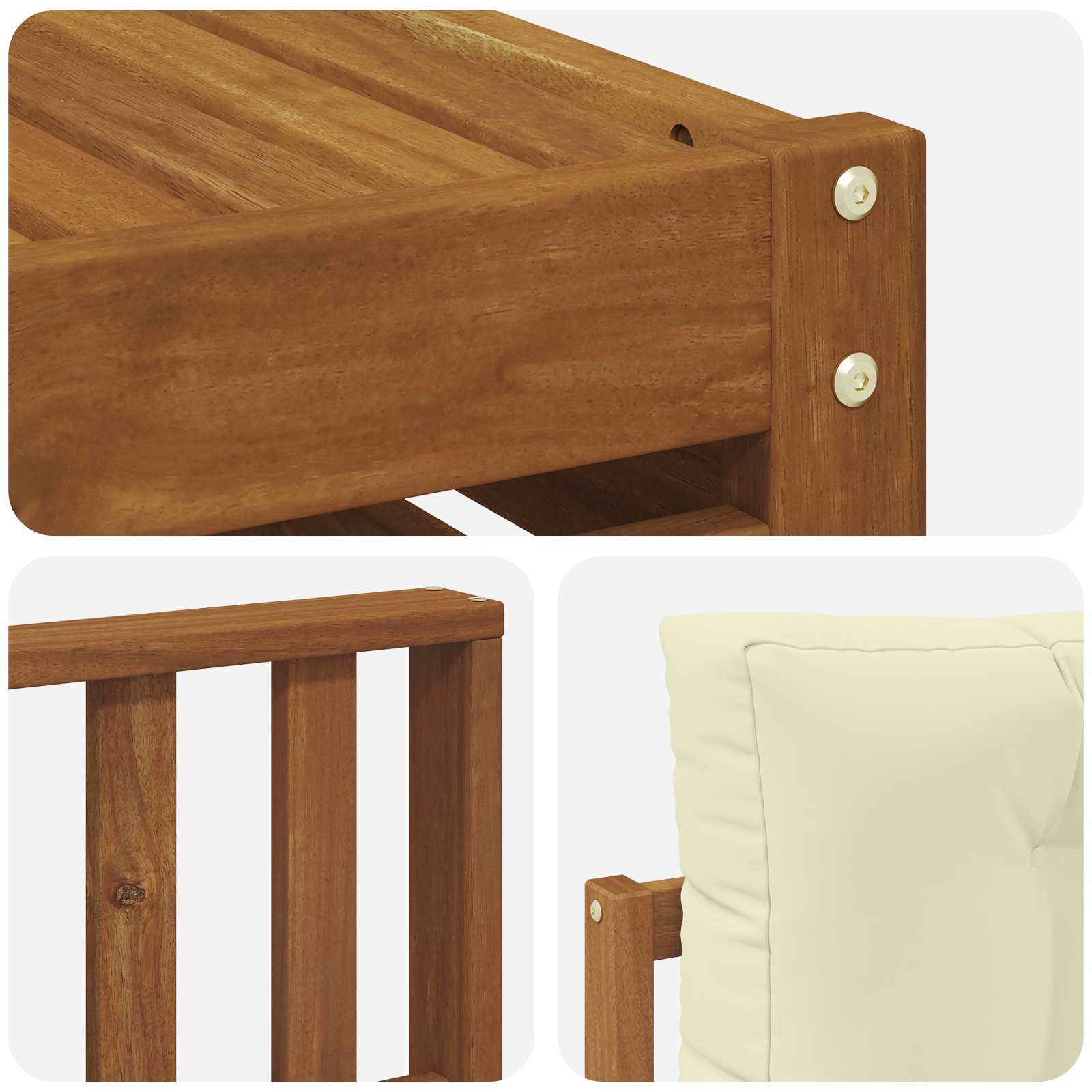 Setul de mobilă pentru exterior aduce împreună stilul și funcționalitatea, transformându-ți grădina sau terasa într-un loc de relaxare. Designul său modern cu linii simple și detalii subtile ajută la crearea unei atmosfere elegante, perfectă pentru petreceri în aer liber. Tot din lemn masiv de acacia, setul e durabil și arată bine pe termen lung, ideal pentru cei care caută mobilier practic, dar și rafinat.
