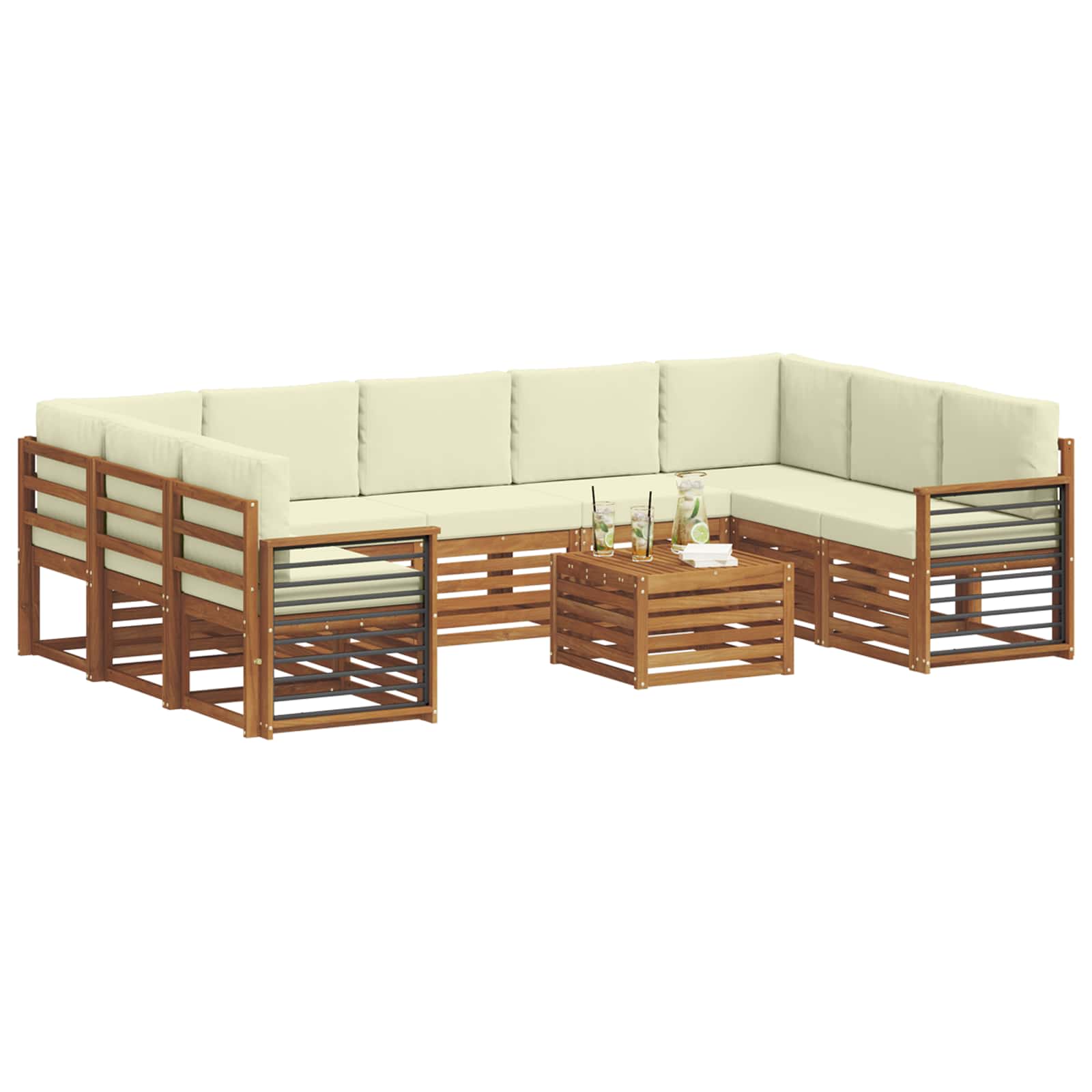 Seturi de canapele 10 pcs Natural și Crem Lemn Solid de Acacia GartenMobel Dekor