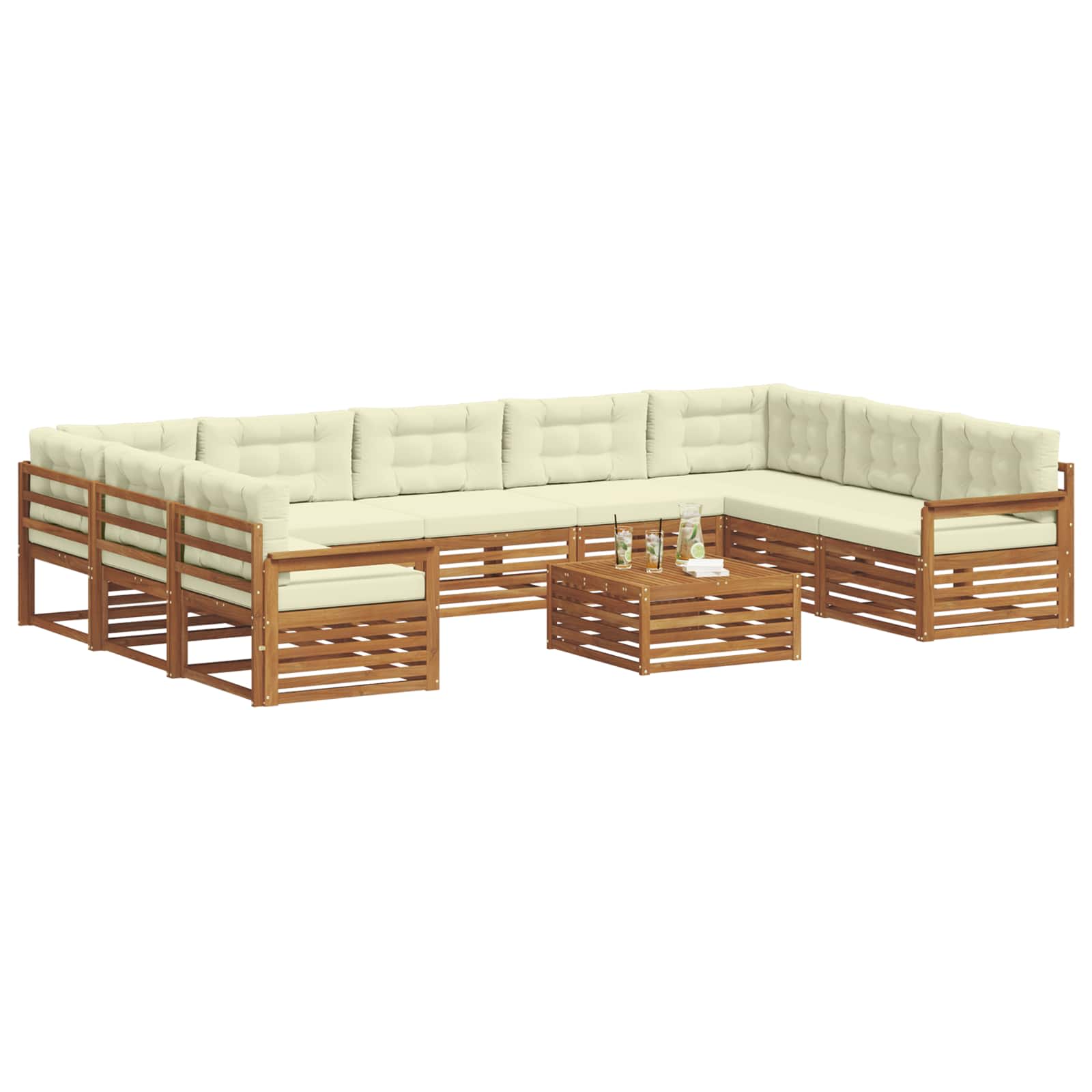 Seturi de canapele 10 pcs Natural și Crem Lemn Solid de Acacia GartenMobel Dekor