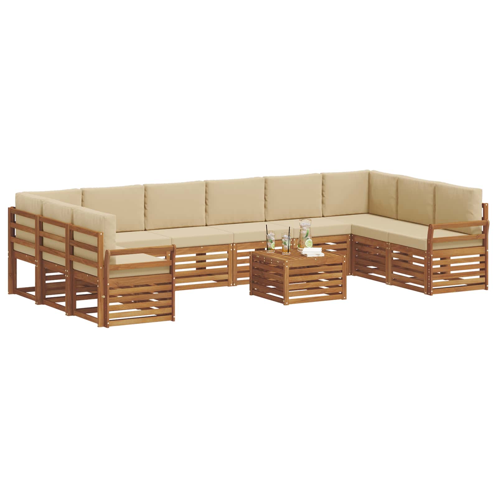 Seturi de canapele 11 pcs Natural și Bej Lemn Solid de Acacia GartenMobel Dekor