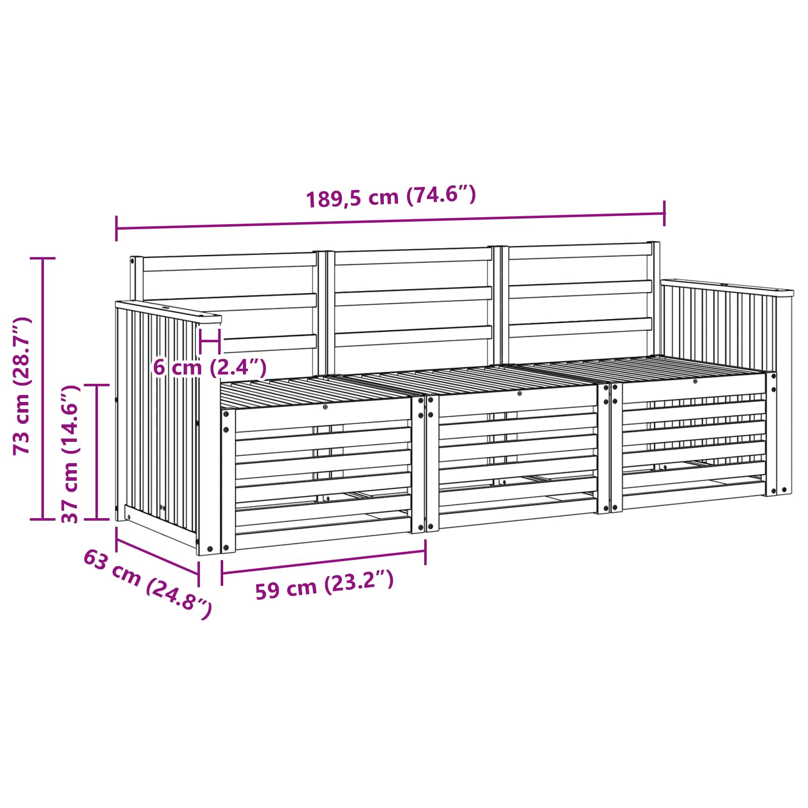 - 3 x Canapea mijlocie: 63 x 59 x 73 cm (LxWxH)