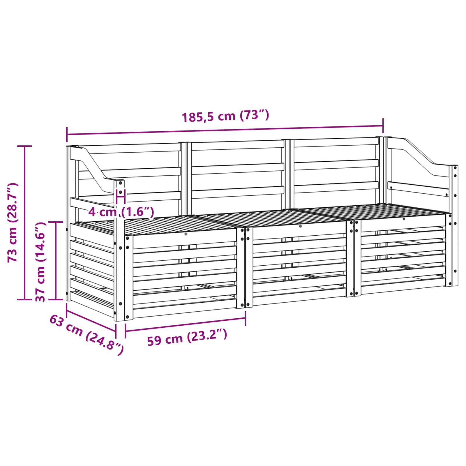 - 3 x Canapea mijlocie: 63 x 59 x 73 cm (LxWxH)