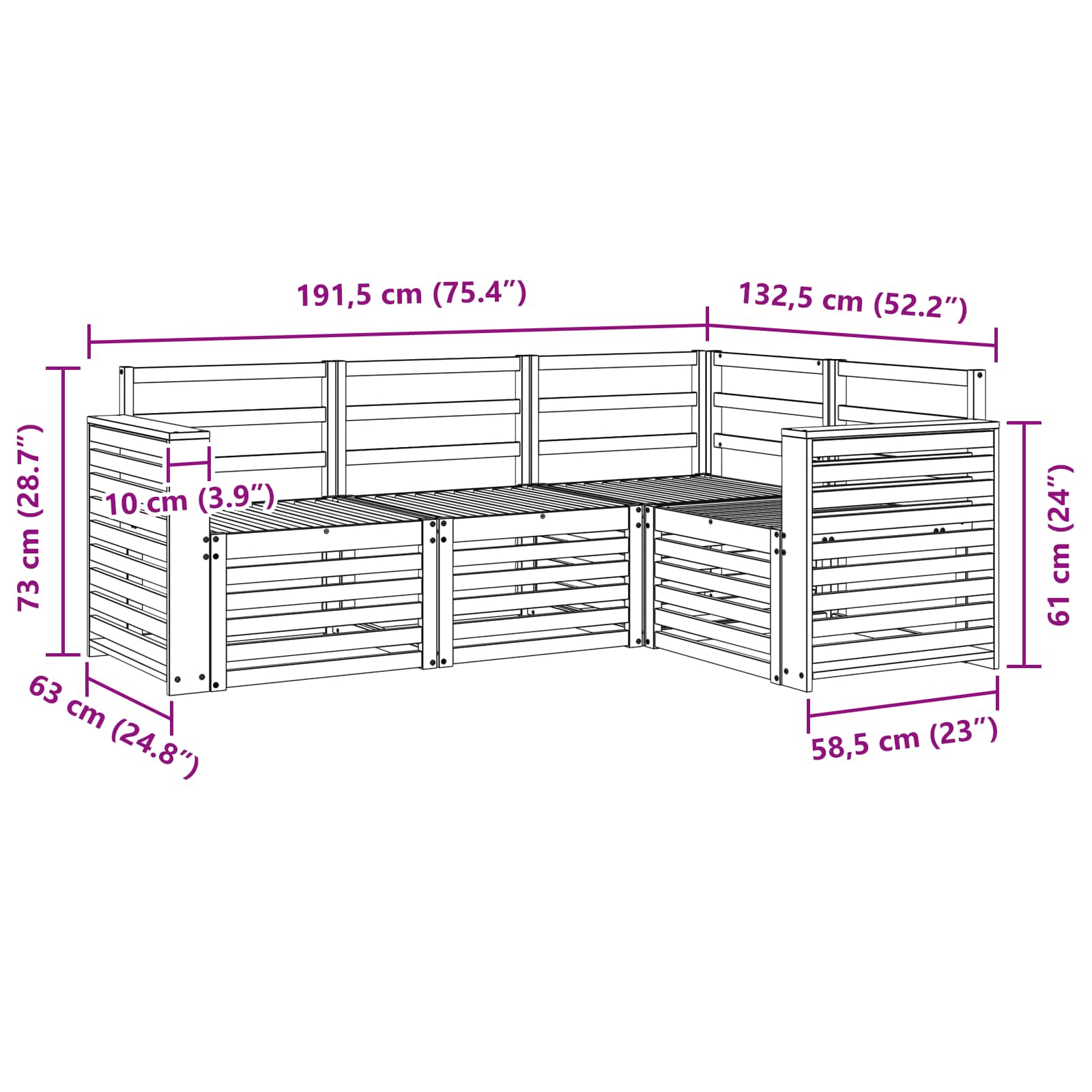 - 1 x Canapea coltar: 63 x 63 x 73 cm (LxWxH)