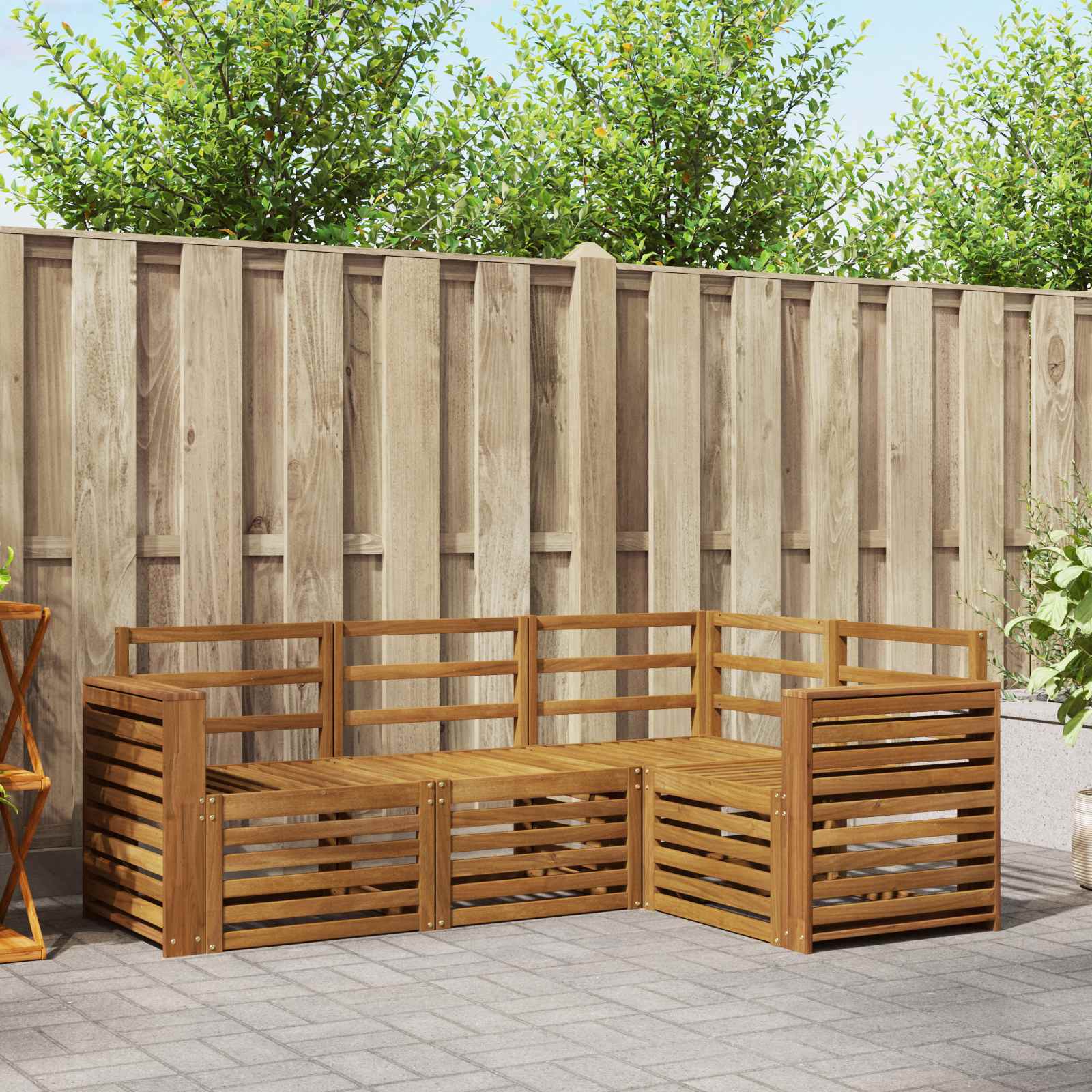 Setul ăsta de mobilă de exterior combină stilul cu funcționalitatea, devenind centrul de atenție pentru orice grădină sau terasă. Are un design modern, cu linii clare și detalii simple, ce aduc eleganță și încurajează relaxarea în aer liber și întâlnirile cu prietenii. Făcut din lemn solid de acacia, setul e durabil și are un aspect plăcut care durează, fiind alegerea ideală pentru cei care vor confort și un design frumos în mobilierul de exterior.