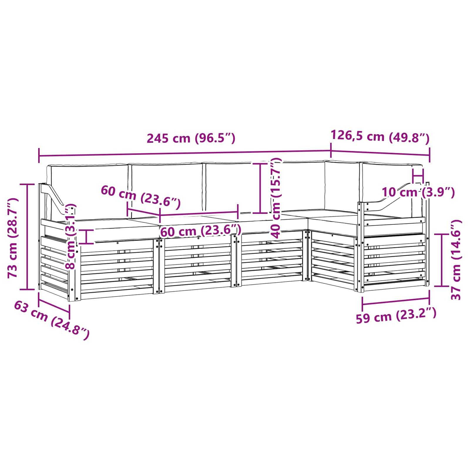 - 4 x Canapea de mijloc: 63 x 59 x 73 cm (LxWxH)