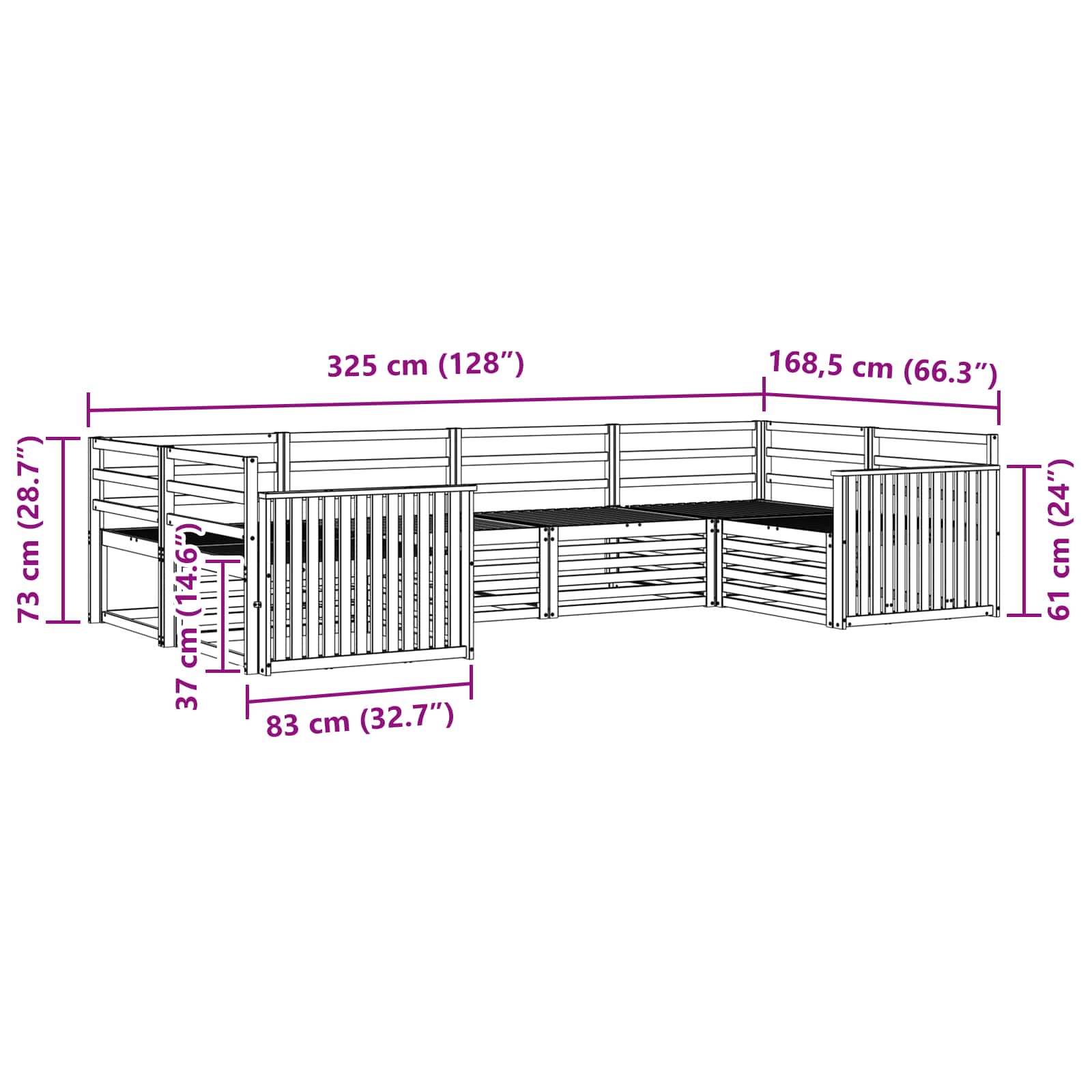- Dimensiuni generale: 325 x 168,5 x 73 cm (L x l x î)