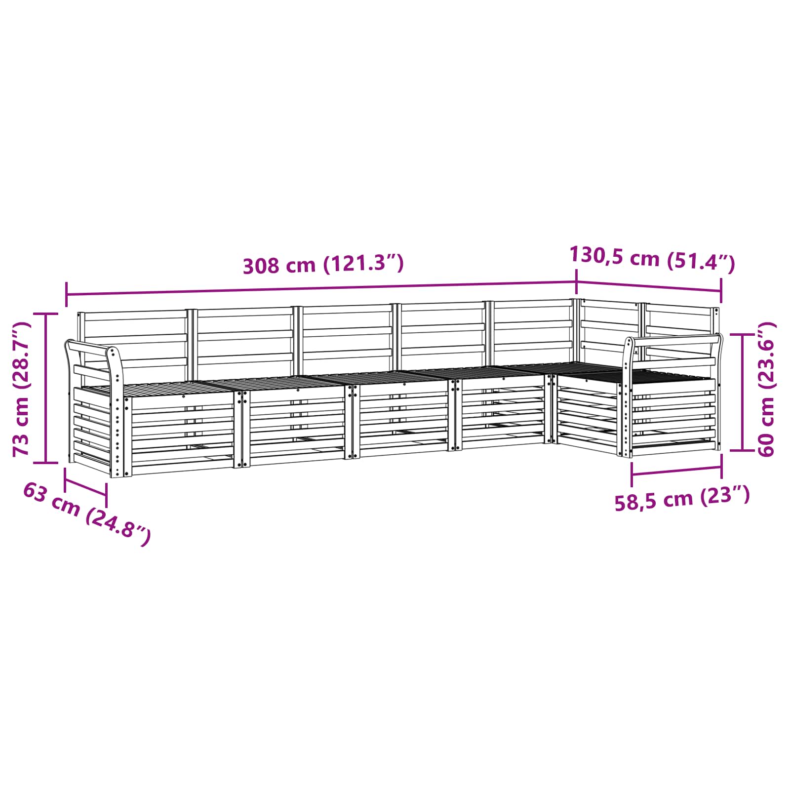 - 5 x Canapea mijloc: 63 x 59 x 73 cm (LxWxH)