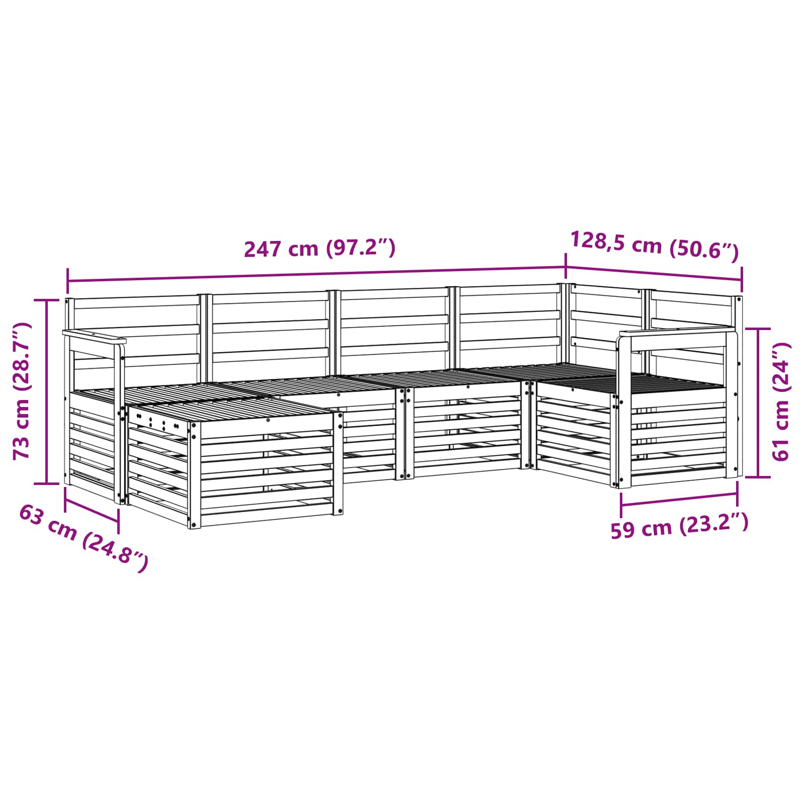- 4 x Canapea mijloc: 63 x 59 x 73 cm (L x l x H)