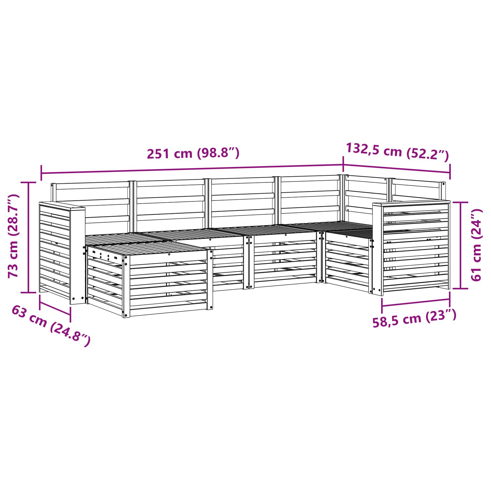 - 4 x Canapea mijloc: 63 x 59 x 73 cm (L x l x H)