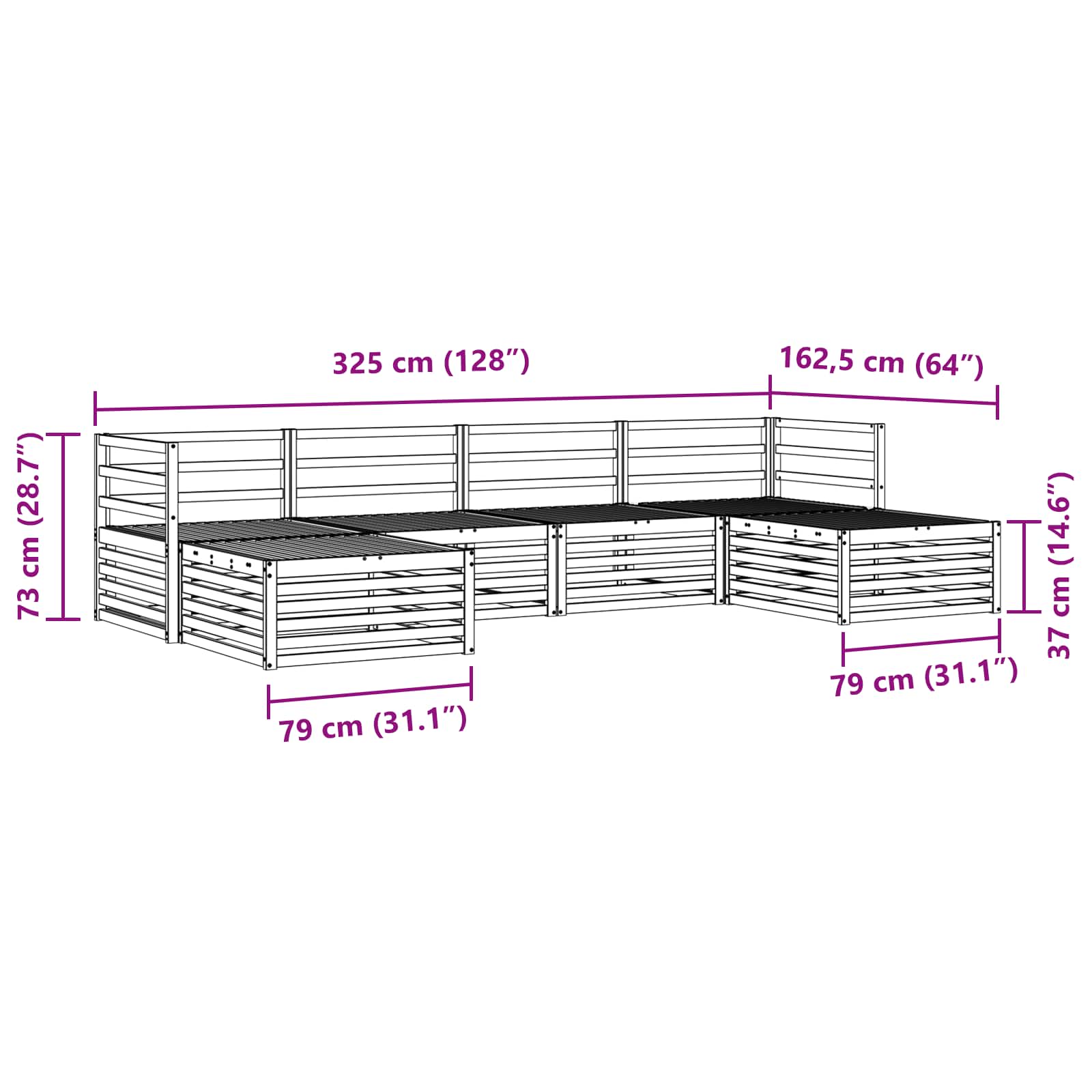 - 4 x Canapea de mijloc: 83 x 79 x 73 cm (LxWxH)