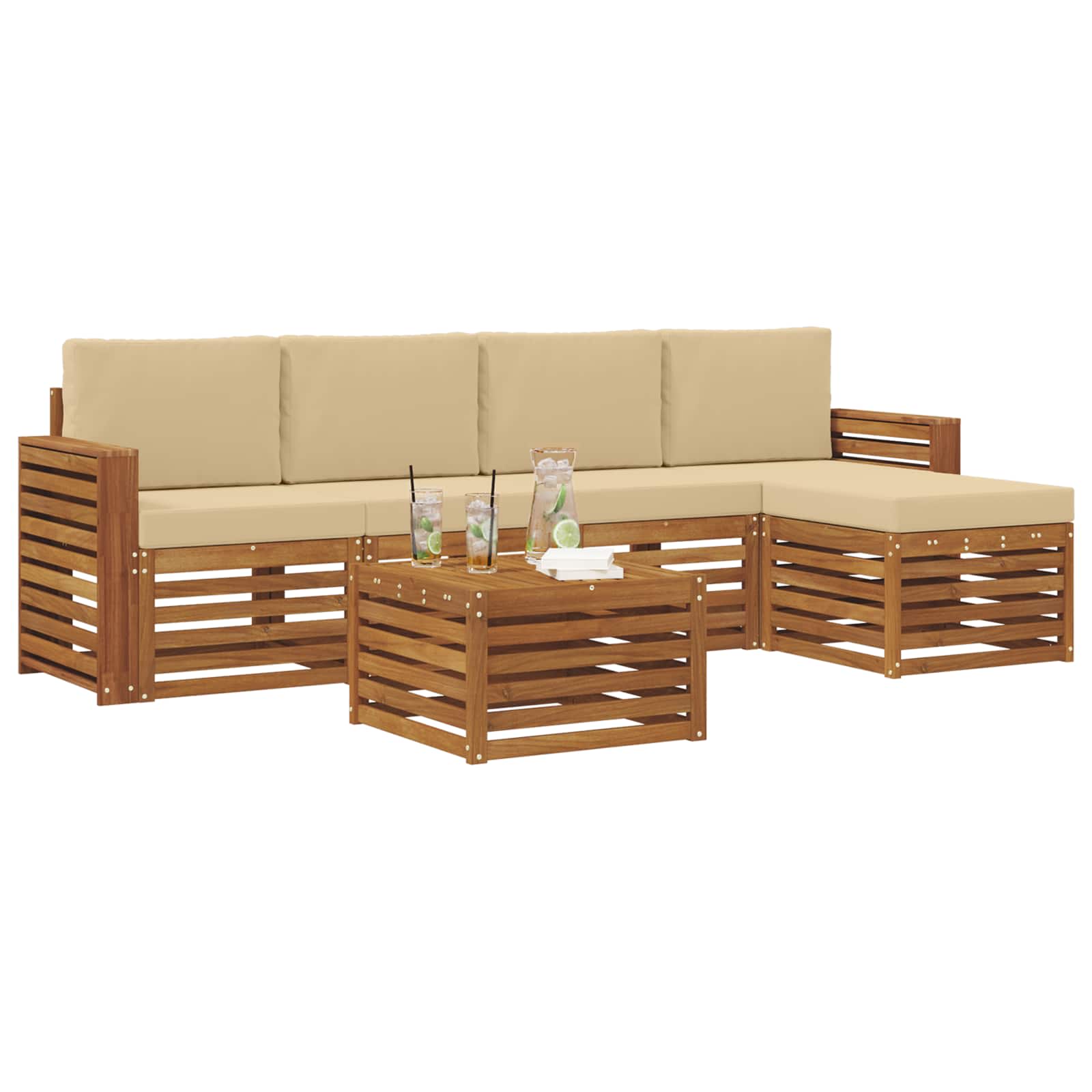 Seturi de canapele 6 pcs Natural și Bej Lemn Solid de Acacia GartenMobel Dekor