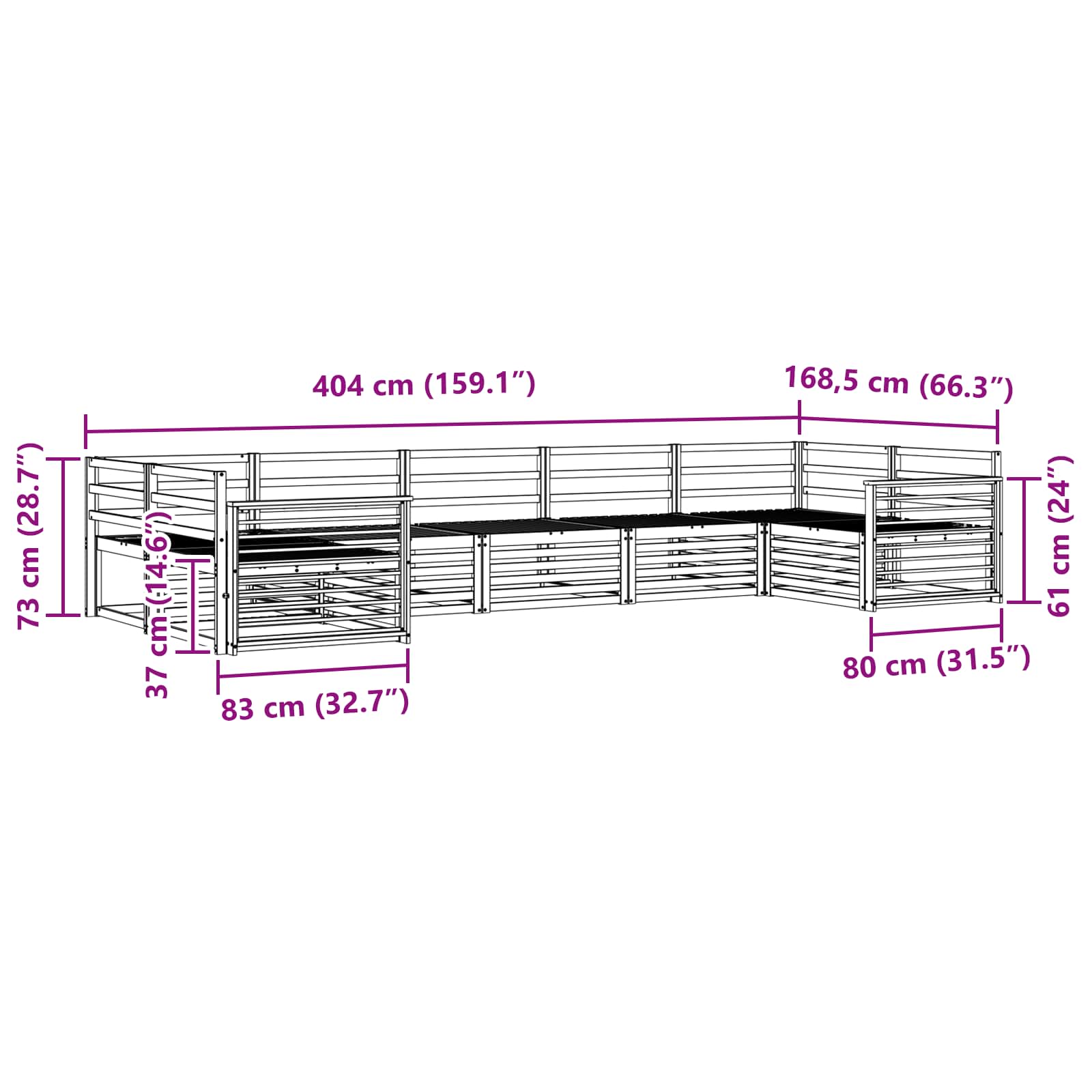 - 5 x Canapea de mijloc: 83 x 79 x 73 cm (LxWxH)
