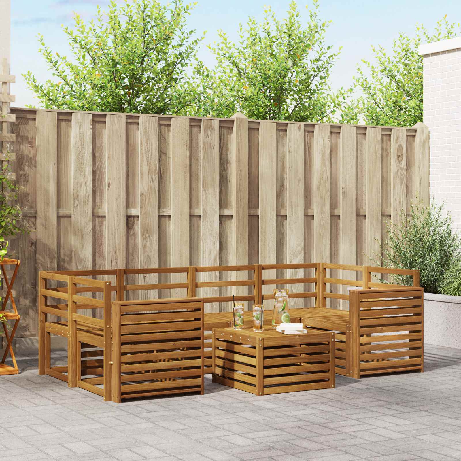 Setul ăsta de mobilier de exterior leagă stilul și funcția, făcându-l piesa centrală perfectă pentru grădina sau terasa ta. Cu un design modern, linii clare și detalii simple, aduce eleganță și susține relaxarea și socializarea afară. Fiind din lemn de acacia masiv, setul e durabil și arată bine pe termen lung, ideal pentru oricine caută un design chic în mobilierul de exterior.