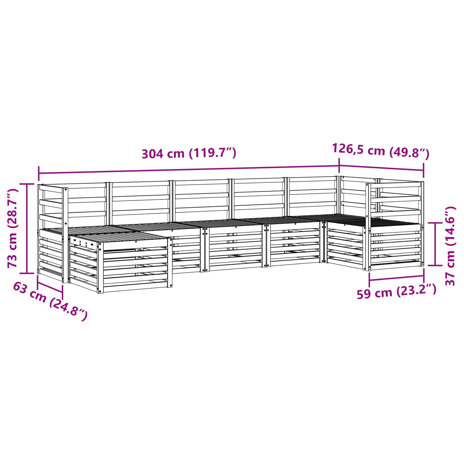 - 5 x Canapea mijloc: 63 x 59 x 73 cm (LxWxH)
