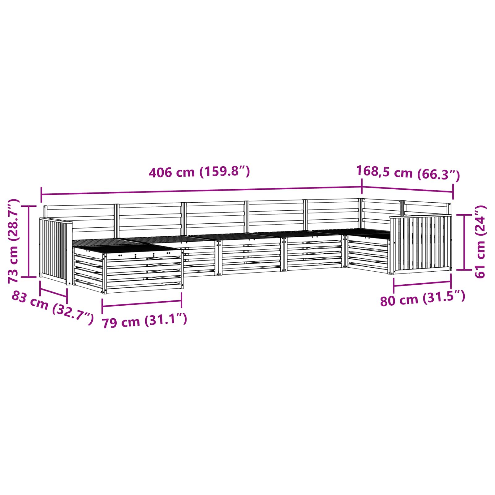 - 5 x Canapea Medie: 83 x 79 x 73 cm (LxWxH)