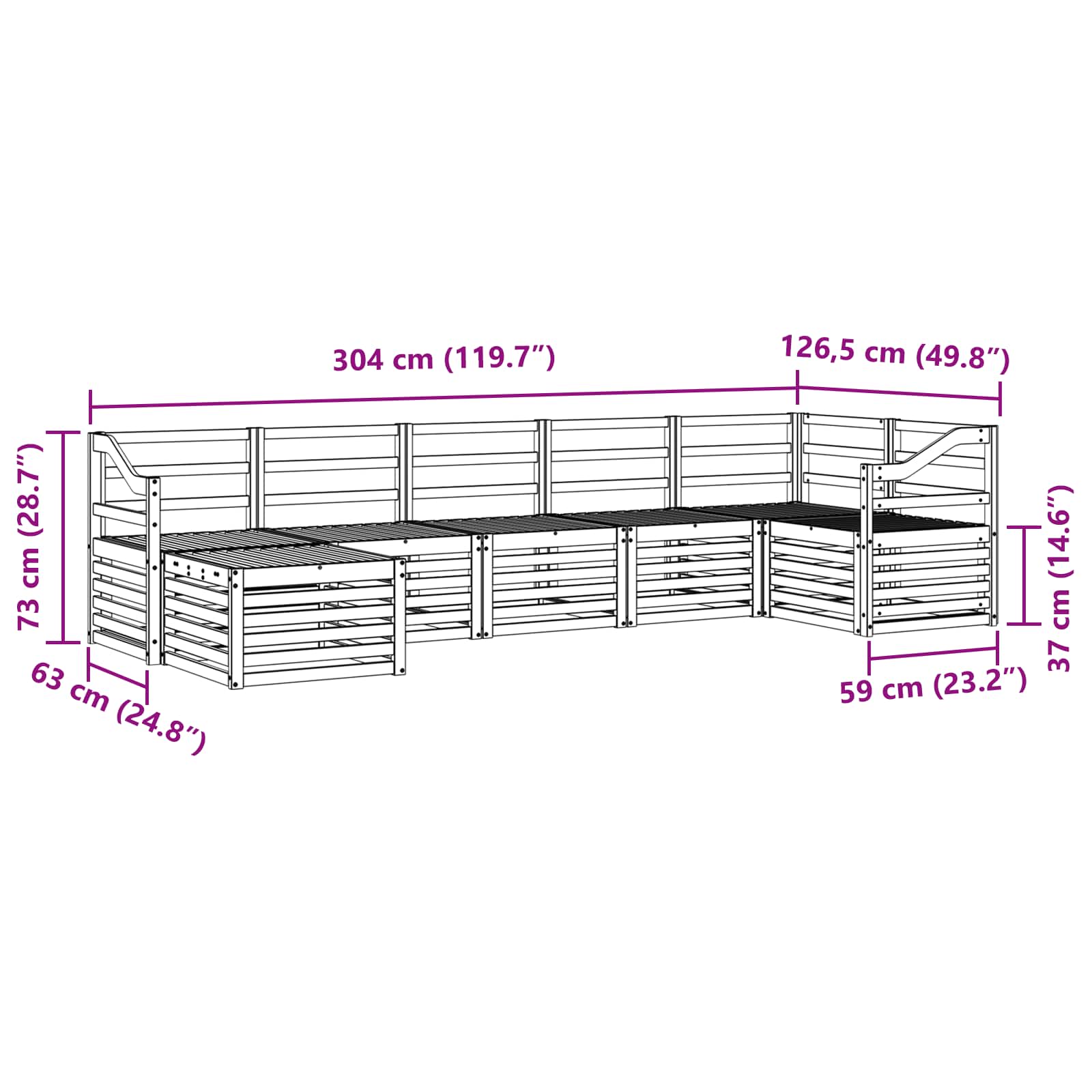 - 5 x Canapea mijloc: 63 x 59 x 73 cm (LxWxH)