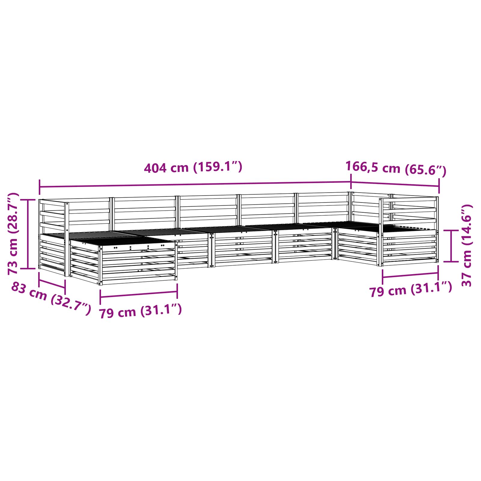 - Dimensiuni generale: 404 x 166,5 x 73 cm (L x l x î)