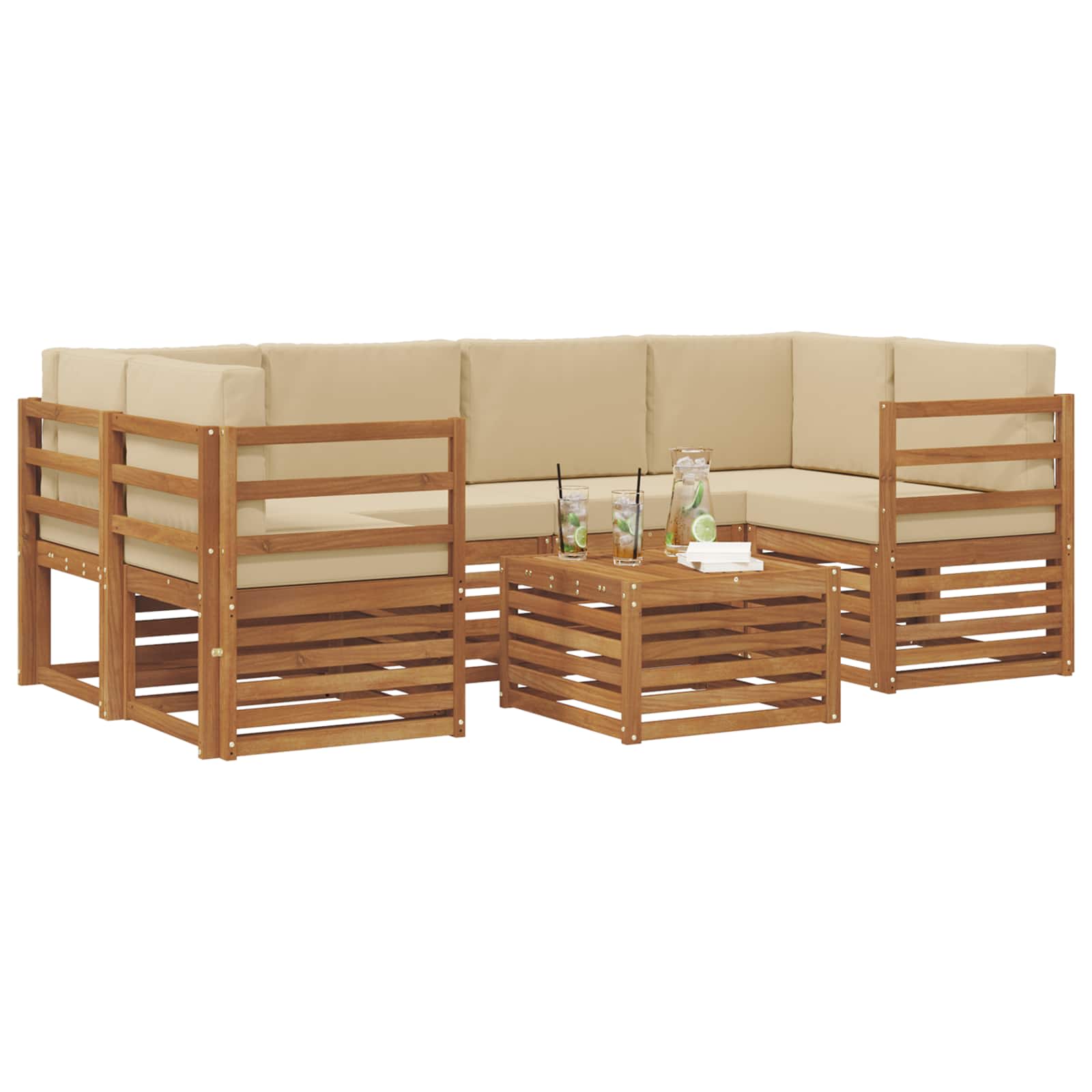 Seturi de canapele 7 pcs Natural și Bej Lemn Solid de Acacia GartenMobel Dekor