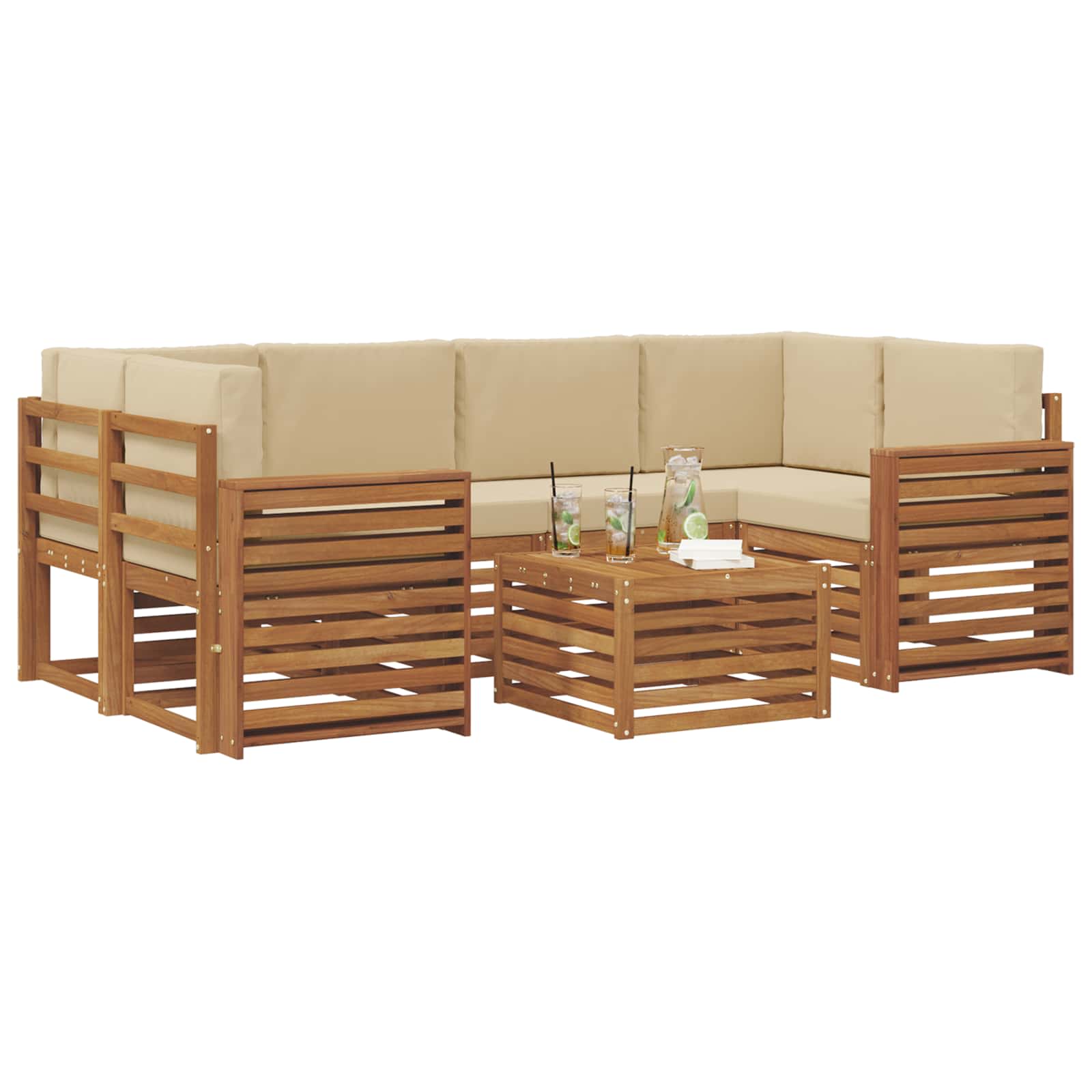 Seturi de canapele 7 pcs Natural și Bej Lemn Solid de Acacia GartenMobel Dekor