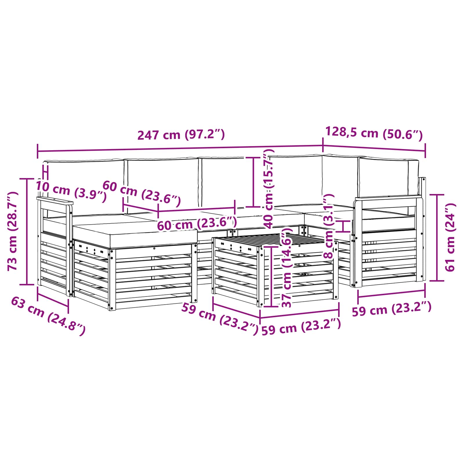 - 6 x Perne de șezut: 60 x 60 x 8 cm (LxWxH)
