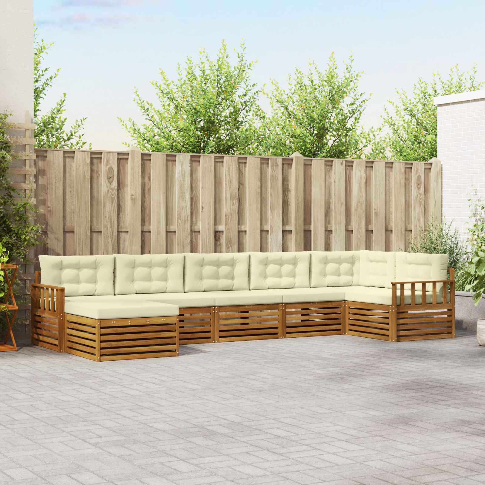 Seturi de canapele 7 pcs Natural și Crem Lemn Solid de Acacia GartenMobel Dekor