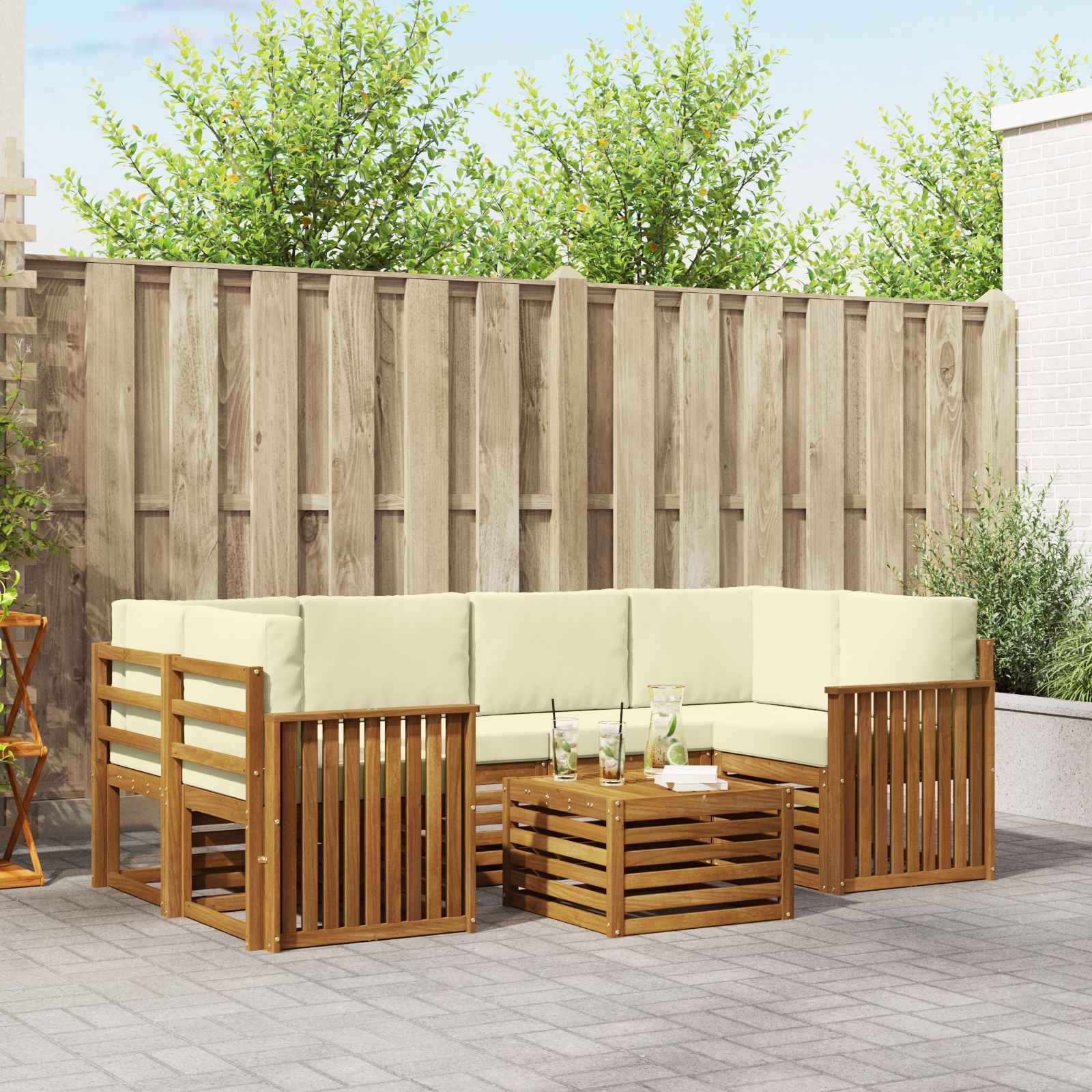 Seturi de canapele 7 pcs Natural și Crem Lemn Solid de Acacia GartenMobel Dekor