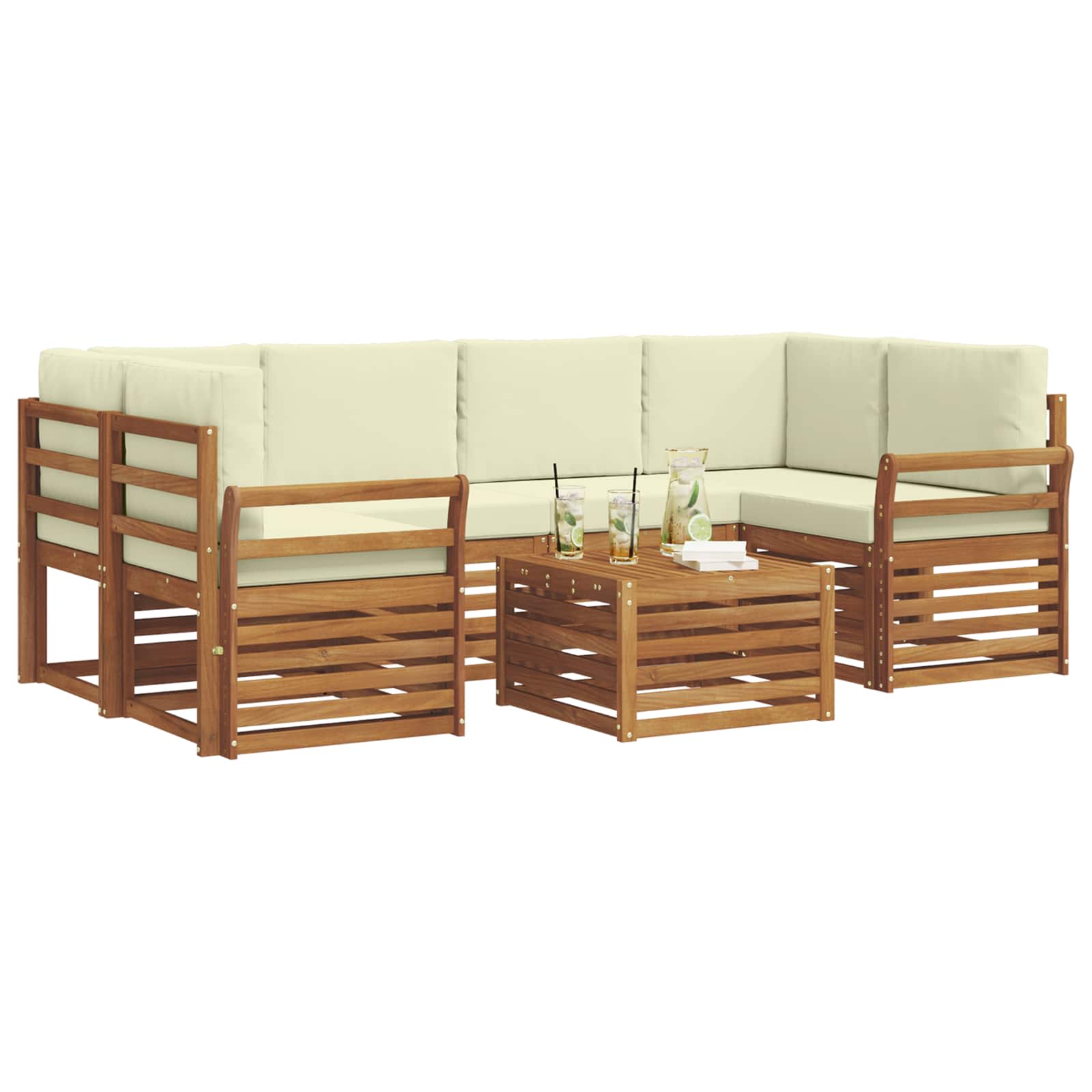 Seturi de canapele 7 pcs Natural și Crem Lemn Solid de Acacia GartenMobel Dekor