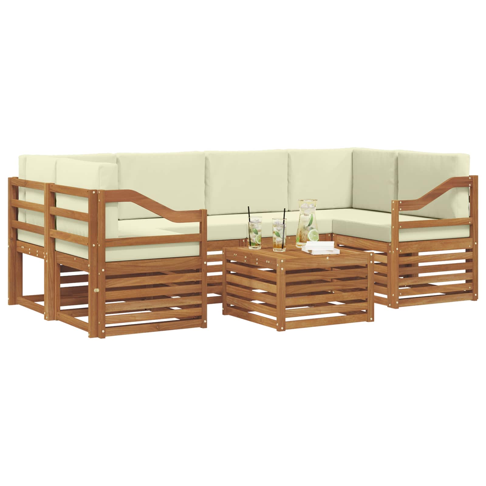 Seturi de canapele 7 pcs Natural și Crem Lemn Solid de Acacia GartenMobel Dekor