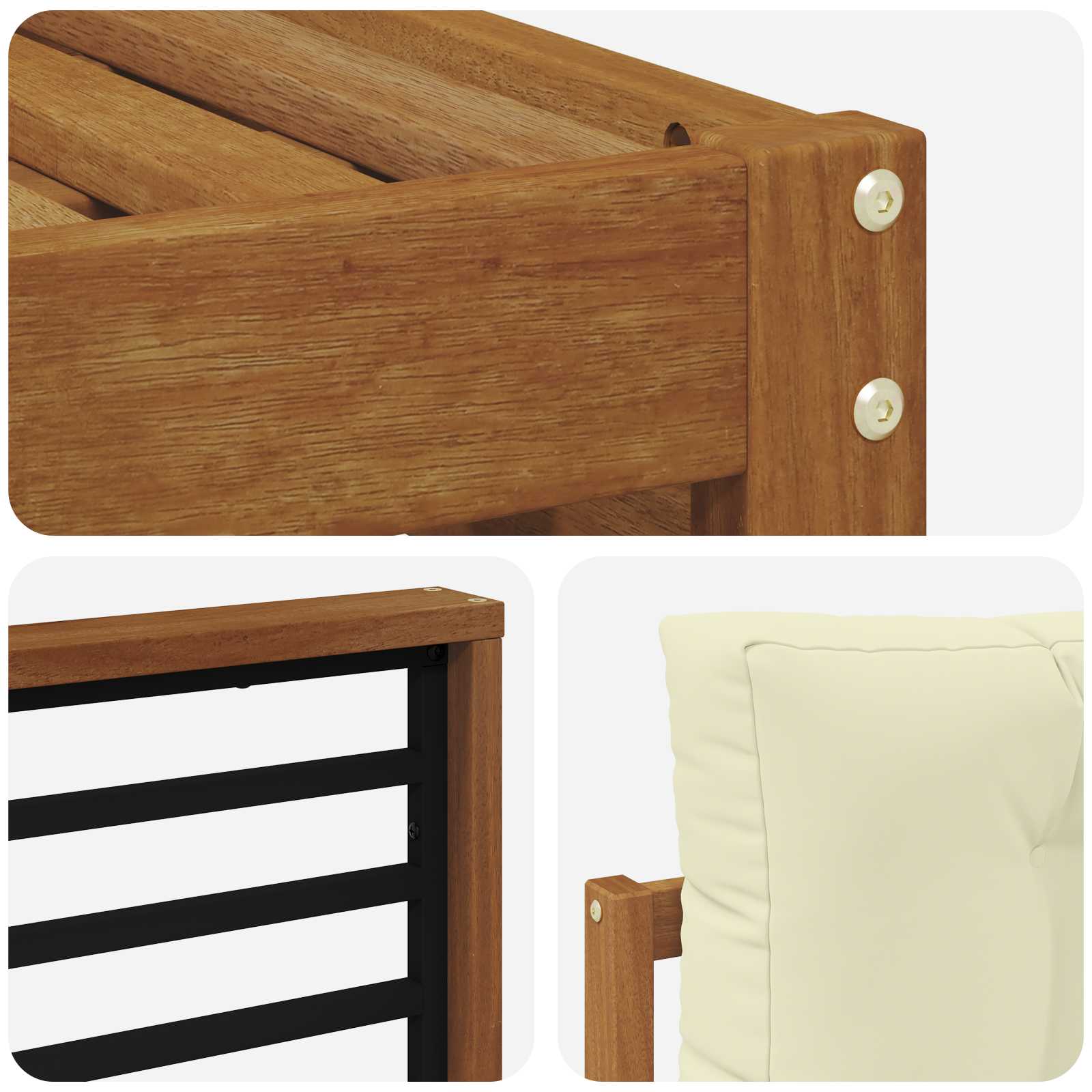 Setul de mobilier pentru exterior aduce împreună stilul și funcționalitatea, creând un punct de interes în orice grădină sau terasă. Designul său modern, cu linii curate și detalii simple, adaugă un aer elegant, perfect pentru relaxare sau întâlniri cu prietenii. Realizat din lemn masiv de acacia, setul oferă durabilitate și un aspect atractiv pe termen lung, fiind alegerea ideală pentru cei care pun accent pe practicitate și design rafinat în mobilierul de exterior.