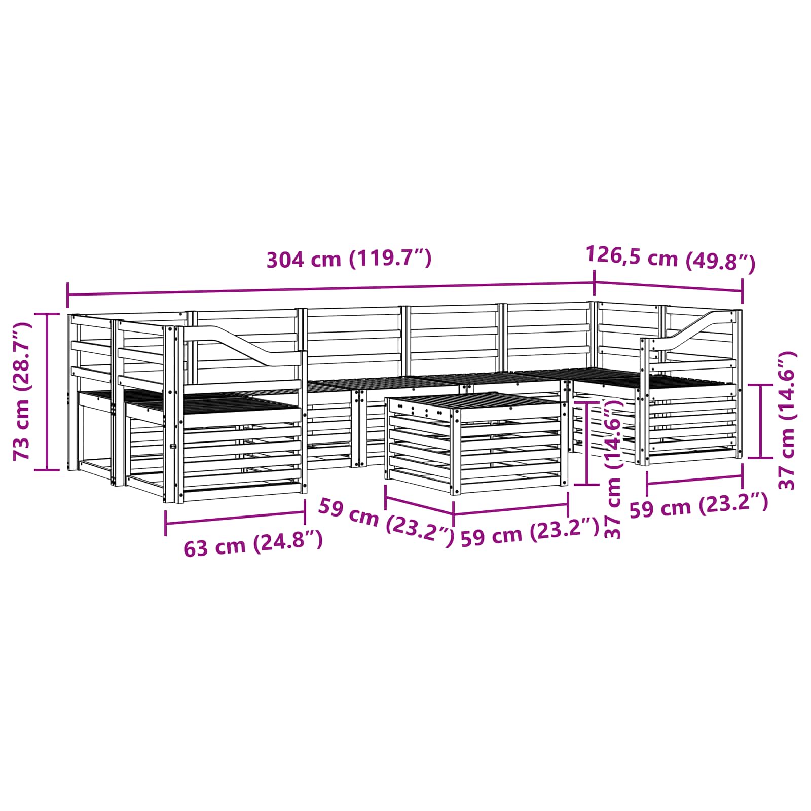 - 5 x Canapea mijlocie: 63 x 59 x 73 cm (LxWxH)