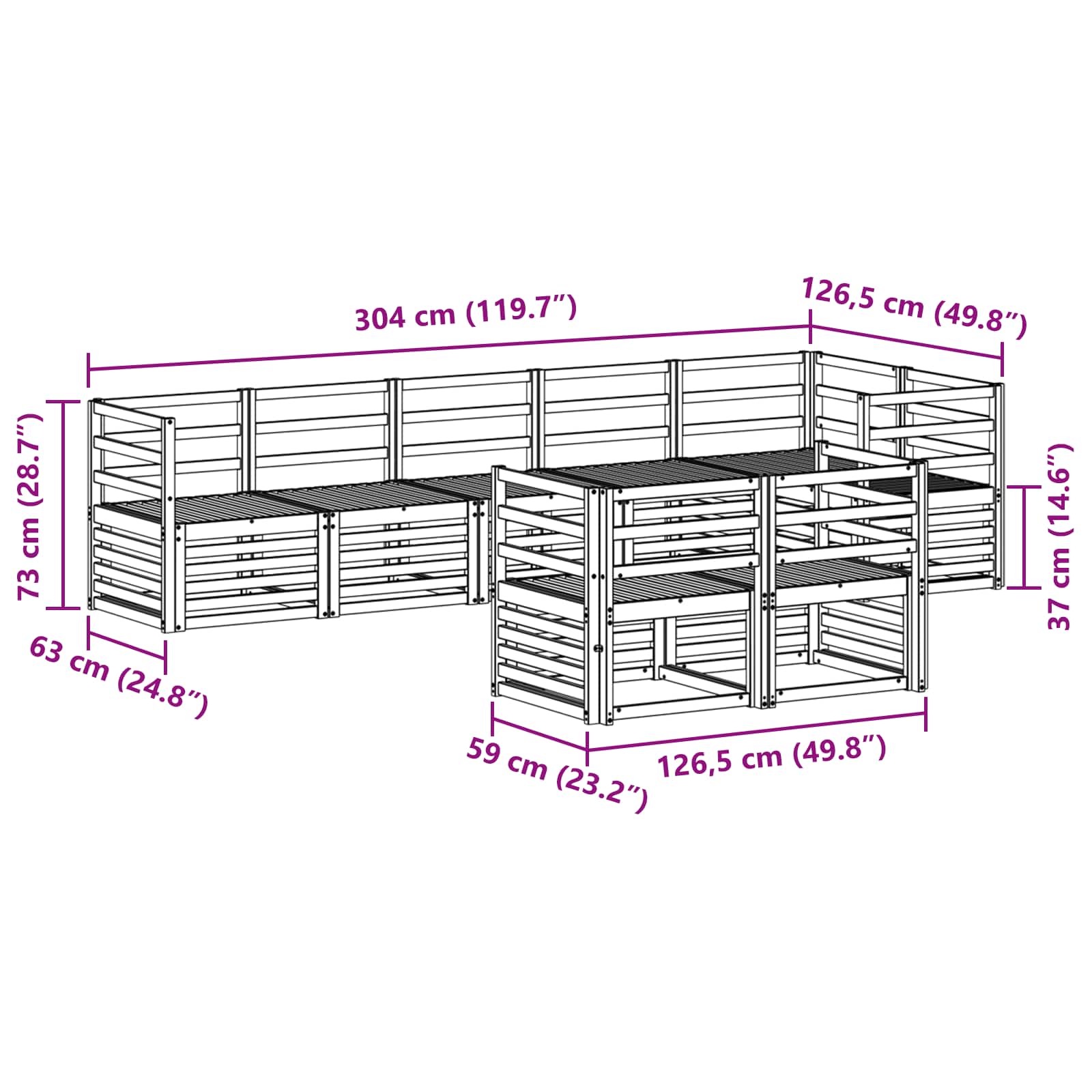 - 7 x Canapea mijlocie: 63 x 59 x 73 cm (LxWxH)