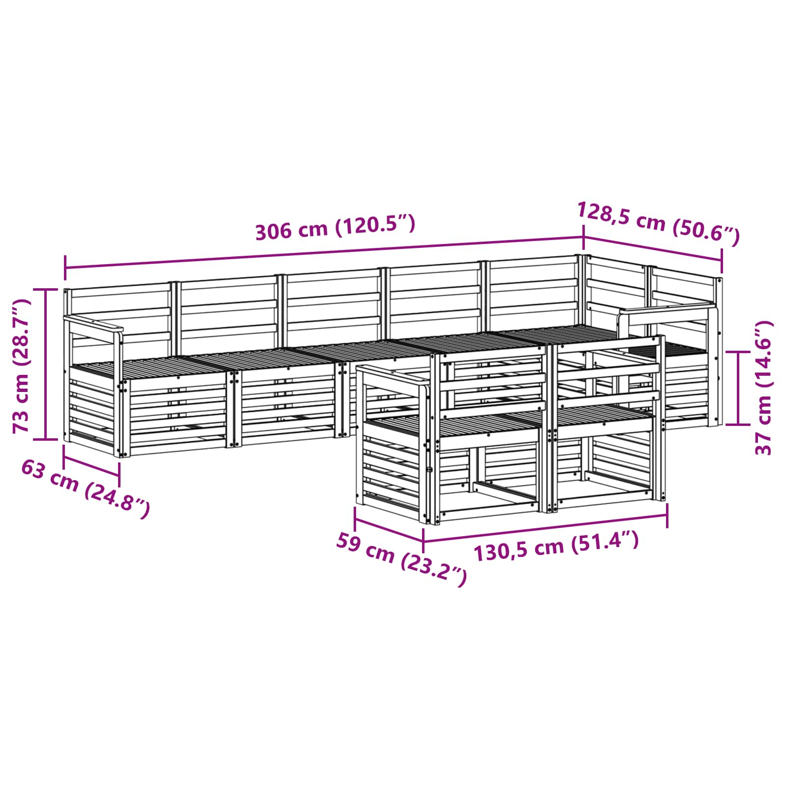 - 7 x Canapea mijlocie: 63 x 59 x 73 cm (L x l x î)