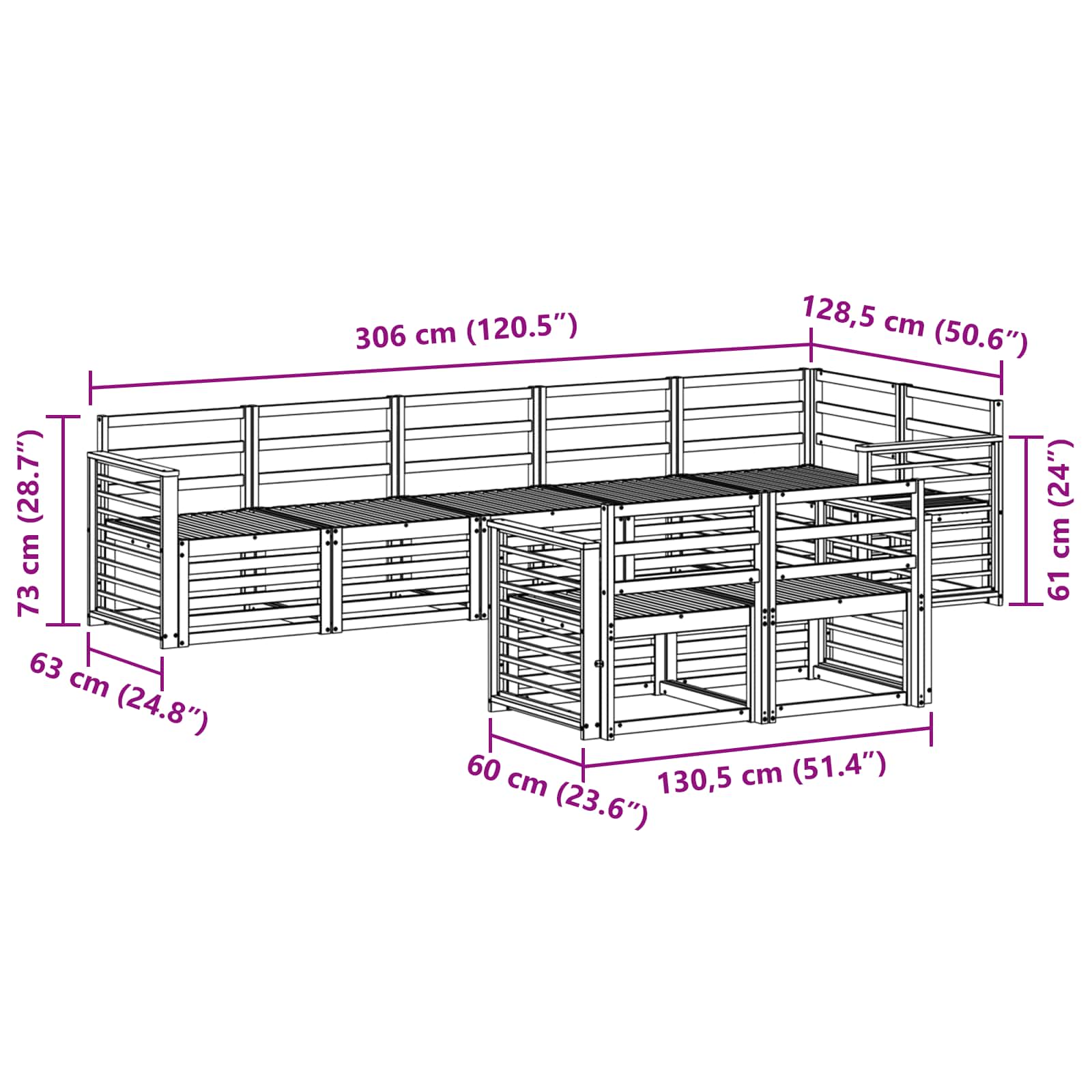 - Dimensiuni generale: 306 x 128,5 x 73 cm (L x l x î)